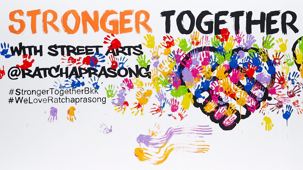 จุดประกายความสุขให้กลับคืนสู่ย่านราชประสงค์...ผู้ประกอบกิจการที่รวมตัวกันเป็น “ชาวราชประสงค์” ได้จัดกิจกรรมจุดประกายความสุข ด้วยการสร้างสรรค์ศิลปะสะท้อนไลฟ์สไตล์และความเข้มแข็งของประเทศไทย ในงาน “Stronger Together with Street Arts at Ratchaprasong” พร้อมเชิญชวนชาวไทยมาร่วมเป็นหนึ่งเดียวกันในการส่งต่อความสุขผ่านผลงานศิลปะ ที่ใจกลางย่านราชประสงค์