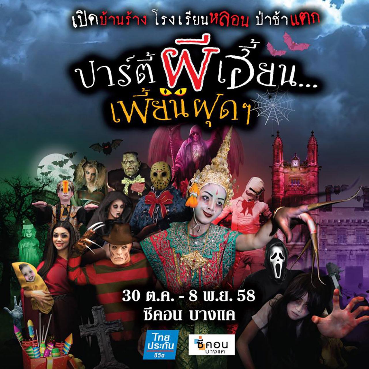 วันที่ 30 ต.ค. - 8 พ.ย. 2558 ชวนไปสนุกกับวันปล่อยผีในงาน "ปาร์ตี้ผีเฮี้ยน...เพื้ยนฝุดๆ" ณ บริเวณลานกลาง ชั้น 1 ศูนย์สรรพสินค้าซีคอน บางแค ภายในงานพบกับ ความหฤหรรษ์ปนความหลอนของโรงเรียนผีสิงนานาชาติ กับเหล่าพลพรรคผี ทั้งไทย และเทศ ที่จะมาสร้างความสนุกสนาน และกระตุกขวัญสั่นประสาท เช่น ชักกี้, จูออน, แคสเปอร์, เจสัน, เฟรดดี้ ฯลฯ