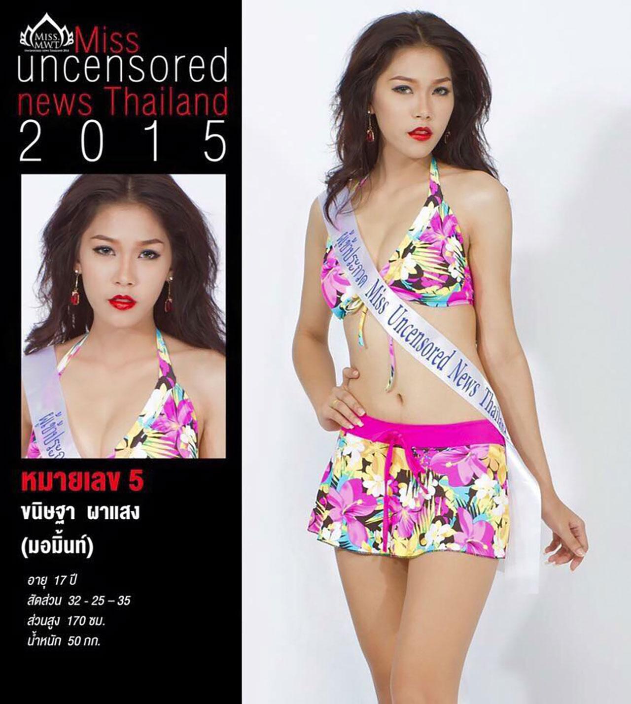1.น้องมิ้นต์ ขนิษฐา ผาแสง สาวน้อยวัยใสอายุ 17 ปี เข้ามาประกวดมิสอันเซนเซอร์นิวส์ไทยแลนด์ได้ เพราะมีคนรู้จักชักชวนเข้ามาประกวด และบ้านน้องมิ้นต์อยู่แถวสมุทรปราการ เวทีประกวดจัดอยู่ที่อิมพีเรียลสำโรง สะดวกกับการเดินทางก็เลยลองไปดู