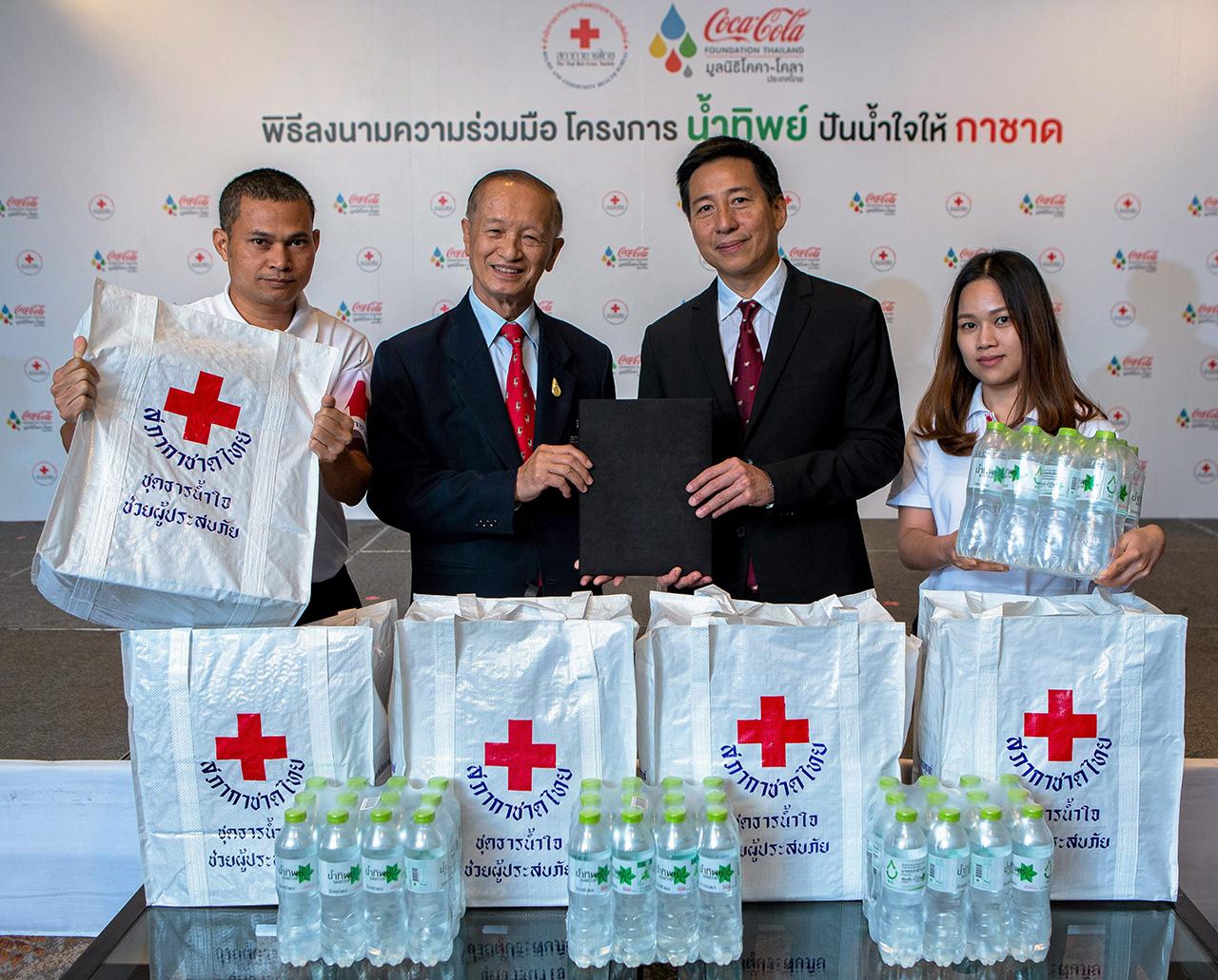 เพื่อสนับสนุนการทำงานของสภากาชาดไทยในการช่วยเหลือผู้ประสบภัยพิบัติทั่วประเทศ พรวุฒิ สารสิน ประธานกรรมการมูลนิธิ โคคา-โคลา ประเทศไทย และ พล.ท.นพ.อำนาจ บาลี ผู้อำนวยการสำนักงานบรรเทาทุกข์และประชานามัยพิทักษ์ สภากาชาดไทย ได้ลงนามบันทึกข้อตกลงความร่วมมือเพื่อดำเนิน โครงการ “น้ำทิพย์ปันน้ำใจให้กาชาด” ต่อเนื่องอีก 3 ปี ระหว่างปี 2559-2561 ด้วยการสนับสนุนน้ำดื่ม “น้ำทิพย์” พร้อมขนส่งไปยังหน่วยบรรเทาทุกข์ของสภากาชาดไทยในพื้นที่ต่างๆอย่างทันท่วงที ผ่านระบบโลจิสติกส์ของโคคา-โคลา รวมทั้งพัฒนาความรู้ของอาสาสมัครที่มีอยู่ทั่วประเทศ ด้วยหลักสูตรทบทวนการปฐมพยาบาลและการกู้ชีพ อันจะเป็นการพัฒนาระบบสนับสนุนผู้ประสบภัยพิบัติของสภา กาชาดไทยและโคคา-โคลาให้เป็นต้นแบบความร่วมมือระหว่างภาครัฐ ภาคเอกชน และภาคประชาชนที่มีประสิทธิภาพ หลังจากที่ได้เริ่มความร่วมมือกันมาตั้งแต่ปี 2550
