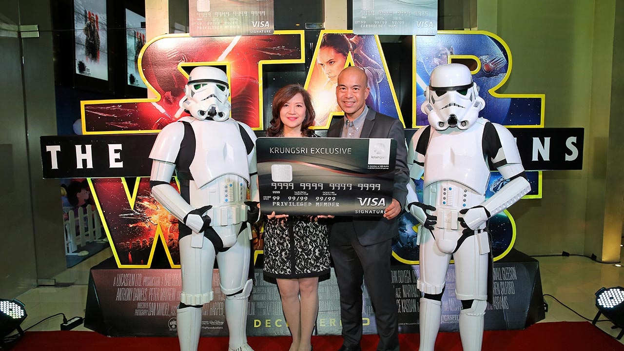 นับเป็นหนึ่งในภาพยนตร์เรื่องฮิตแห่งปี สำหรับ สตาร์ วอร์ส อุบัติการณ์แห่งพลัง ที่เหล่าคอหนังแห่กันไปชมอย่างเนื่องแน่น กรุงศรีซิกเนเจอร์ บัตรเครดิตในเครือธนาคารกรุงศรี จึงมอบสิทธิพิเศษให้สมาชิกได้ชมอภิมหากาพย์ไซไฟโดยไม่ต้องควักกระเป๋า โดย วรรวิมล กนกธนาพร กรรมการผู้อำนวยการ บริษัท บัตรกรุงศรีอยุธยา จำกัด ทุ่มสุดๆปิดโรงภาพยนตร์พารากอน ซีนีเพล็กซ์ และโรงภาพยนตร์เอส เอฟ เวิลด์ ซีเนม่าเซ็นทรัลเวิลด์ ให้ลูกค้าคนสำคัญได้ดูกันอย่างเต็มอิ่ม เมื่อเร็วๆนี้