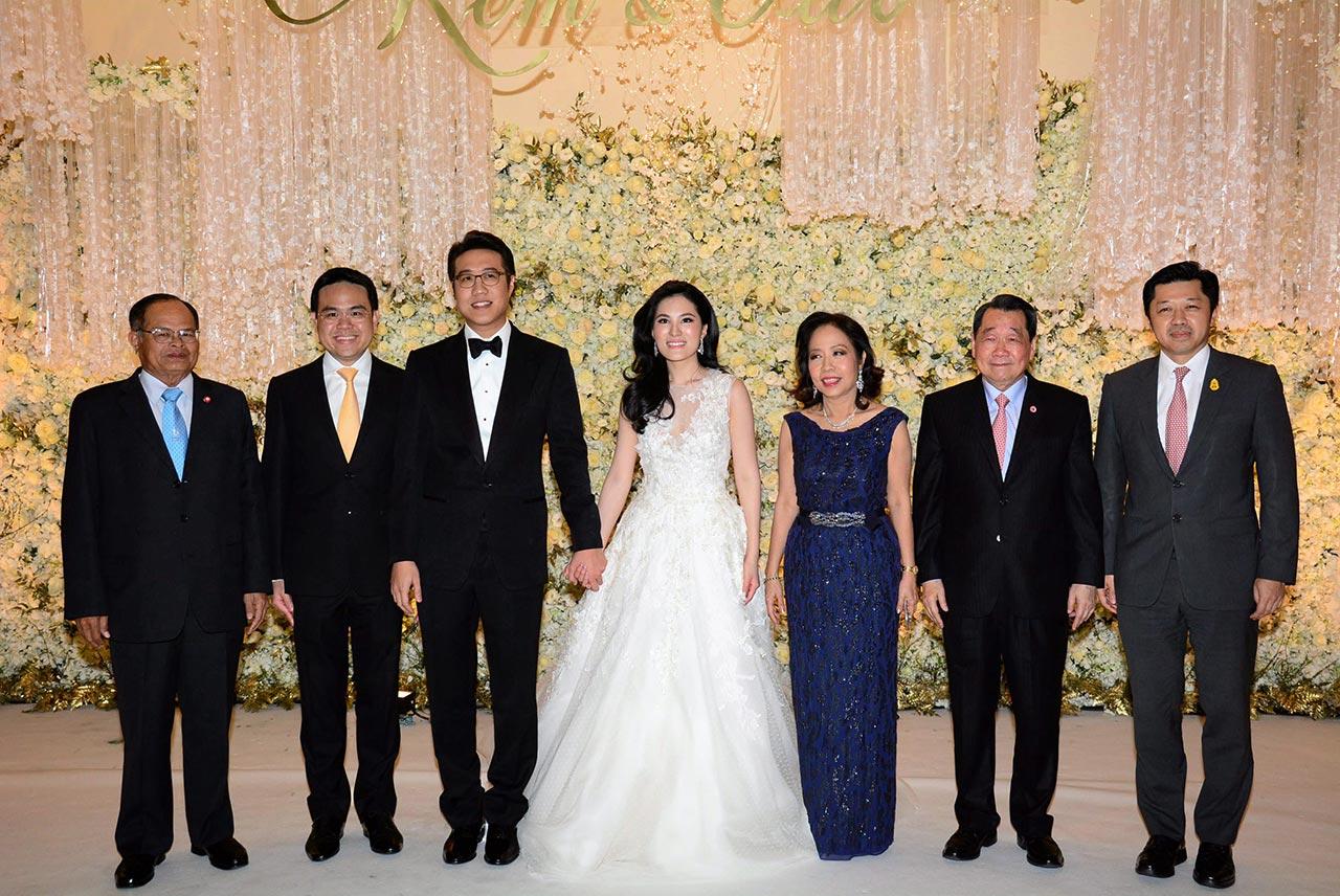 คู่รักคนดัง “เข็ม–ธีราภา พร้อมพันธุ์” และ “แก๊ป–สุรภาพ ลิ่มอติบูลย์” จูงมือเข้าประตูวิวาห์ประเดิม ศักราชใหม่ 2559 ท่ามกลางความรักความ อบอุ่นจากญาติผู้ใหญ่พร้อมมิตรสหายทั้งฝ่ายหญิงและฝ่ายชายกว่า 1,000 คนที่มาร่วมยินดี ในงานเลี้ยงรับรองฉลองสมรสพระราชทาน ที่จัดขึ้นอย่างเรียบง่าย เมื่อค่ำวันศุกร์ที่ผ่านมา (5 ก.พ.) ที่ รร.ดุสิตธานี และนับเป็นพระกรุณาธิคุณอย่างหาที่สุดมิได้แก่คู่บ่าวสาวและครอบครัว ที่ สมเด็จพระเทพรัตนราชสุดาฯ สยามบรมราชกุมารี เสด็จ พระราชดำเนินมาร่วมในงานเลี้ยงด้วย