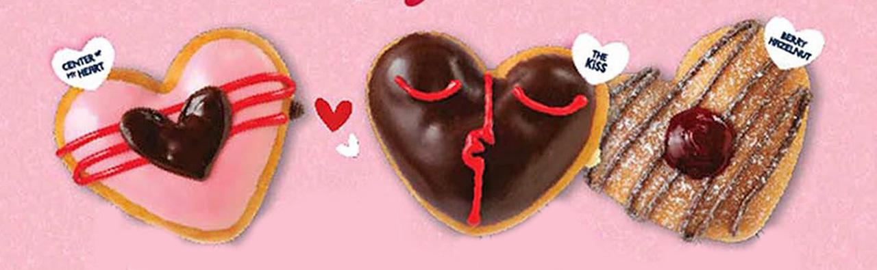 คริสปี้ ครีม ทุกสาขา มี โดนัท เซ็นเตอร์ ออฟ มายฮาร์ตโดนัท สอดไส้ช็อกโกแลตจากเบลเยียม, เดอะ คิส โดนัท และเบอร์รี่ เฮเซลนัท โดนัท ถึง 29 ก.พ.