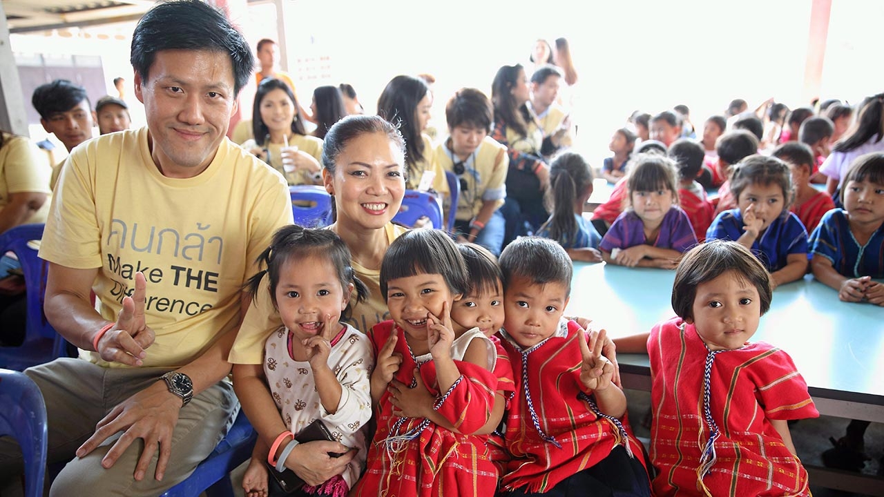 คมกริช กวินอัครฐิติ–รุ่งเพ็ชร พรรณาปยุกต์ จากทีเอ็มบี ร่วมเลี้ยง อาหารน้องๆ ศูนย์พัฒนาเด็กเล็กบ้านห้วยน้ำหนัก จ.ราชบุรี.