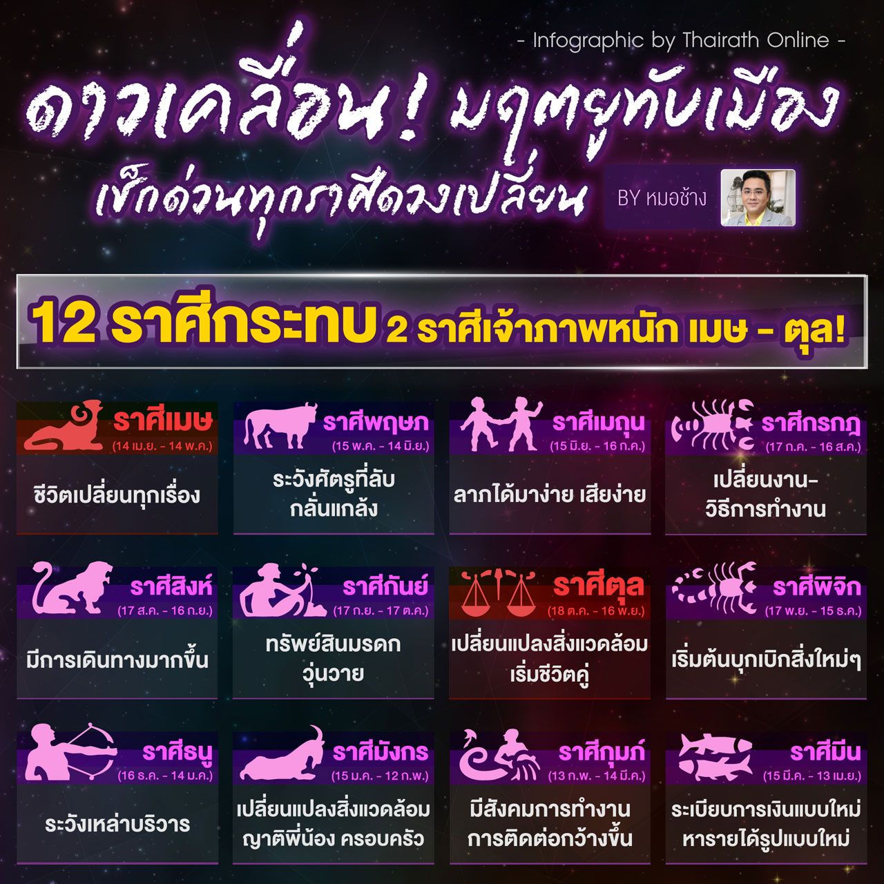 อ่านเพิ่ม : 84 ปีครั้ง มฤตยูทับเมืองสยอง 7 ปี หมอช้างชี้ทุกราศีดวงเปลี่ยน แนะวิธีรอดจาก 'ดาวความตาย')