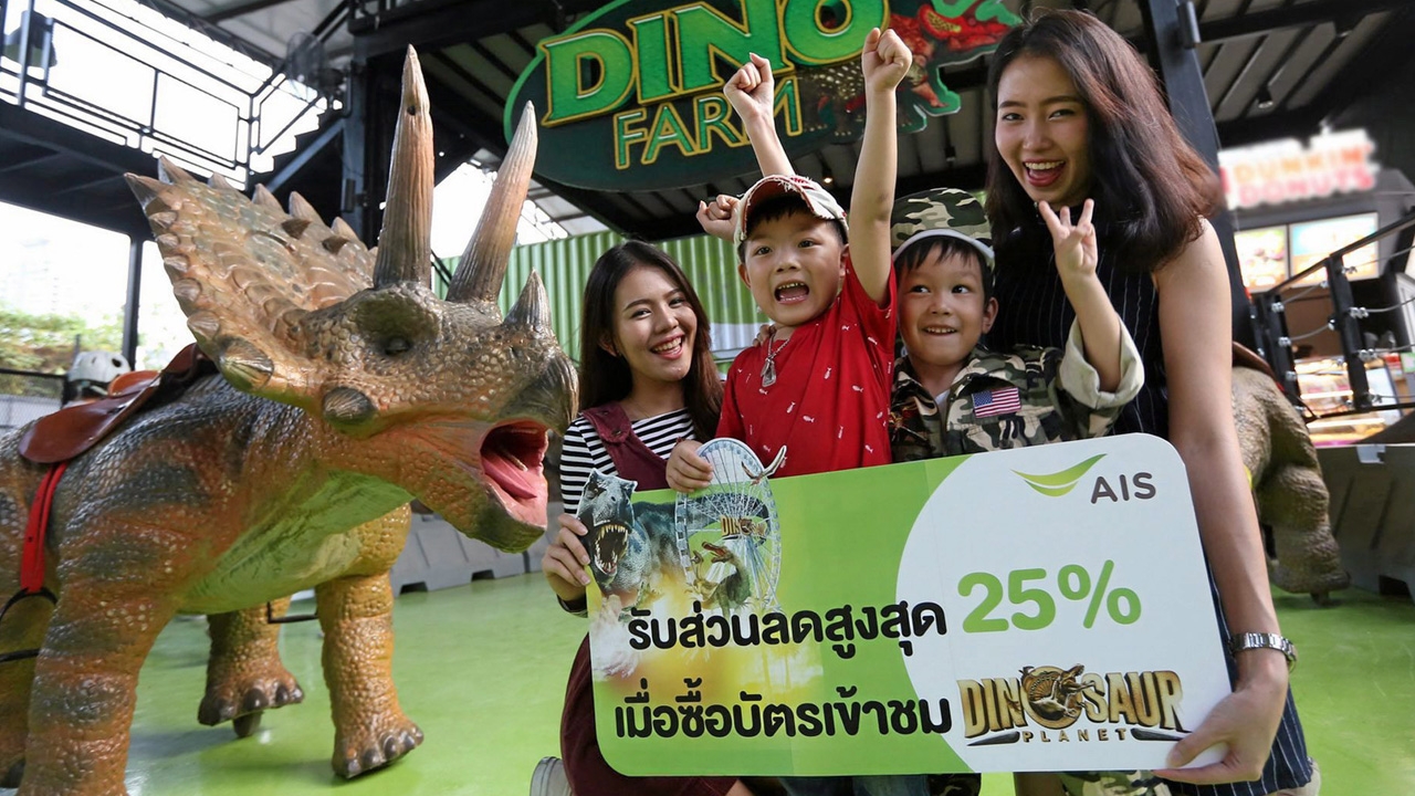 เอไอเอส จัดโปรโมชั่นสุดว้าว!! บัตรเข้าชมไดโนซอร์แพลนเน็ต รับส่วนลด 15% สำหรับลูกค้าเอไอเอส และ 25% สำหรับลูกค้าเอไอเอส เซเรเนด สำหรับลูกค้าที่อยากขี่ไดโนเสาร์หรือชมไดโนฟาร์มก็มีส่วนลดให้ 20% ถึง 30 มิ.ย.นี้เท่านั้น.