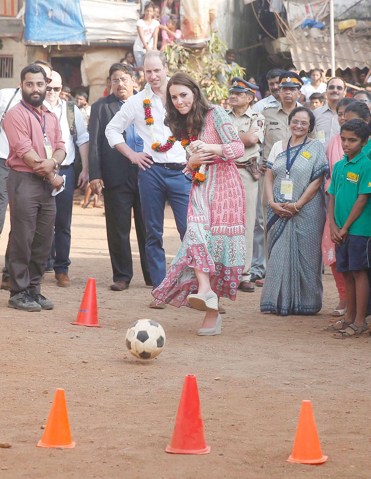 การเสด็จเยือนครั้งนี้ เปรียบเป็นการตามรอยพระบิดาและพระมารดา (เจ้าฟ้าชายชาร์ลส์ มกุฎราชกุมาร และเจ้าหญิงไดอาน่า) ที่เคยเสด็จเยือนประเทศอินเดียด้วยกัน เมื่อ24 ปีก่อน โดยจุดหมายแรกของการเสด็จเยือนอินเดียของดยุคและดัชเชสแห่งเคมบริดจ์ พร้อมด้วยคณะผู้ติดตามอีก 10 คน คือนครมุมไบ ซึ่งดัชเชสแห่งเคมบริดจ์ไม่ได้ทำให้แฟนคลับผิดหวัง ทรงสวยเด่นด้วยชุดกระโปรงบานสีแดง พิมพ์ลาย ที่ออกแบบโดยอเล็กซานเดอร์ แม็คควีน ดีไซเนอร์ดังของอังกฤษ และตลอดเวลาที่ประทับในอินเดีย เจ้าหญิงเคททรงฉลองพระองค์ชุดยาวกรอมเท้า คล้ายชุดส่าหรี ซึ่งสอดคล้องกับวัฒนธรรมของอินเดีย สร้างความชื่นชมจากชาวโลกที่ติดตามเฝ้าดู ซึ่งทุกชุดออกแบบโดยดีไซเนอร์อังกฤษและอินเดีย อย่างชุดกระโปรงลายพริ้นต์สีหวานสดใส ที่เจ้าหญิงเคททรงสวมใส่ออกปฏิบัติพระภารกิจแรก โดยเสด็จไปเยี่ยมชาวชุมชนแออัดของนครมุมไบ พร้อมร่วมเตะบอลและเล่นคริกเกตกับเยาวชนในสลัมอย่างสนุกสนานเป็นกันเอง ก็ออกแบบโดยดีไซเนอร์ชาวมุมไบ Anita Dongre ส่วนชุดราตรีสีน้ำเงินปักเลื่อม พร้อมผ้าคลุมไหล่ยาว ที่ทรงสวมใส่ไปในงานเลี้ยงอาหารค่ำ ที่มีทั้งดาราบอลลีวูดและนักธุรกิจมาร่วมงานคับคั่ง ที่โรงแรม Taj Palace จากฝีมือการออกแบบของดีไซเนอร์แบรนด์ Jenny Packham ของอังกฤษ ซึ่งได้แรงบันดาลใจจากแฟชั่นอินเดีย