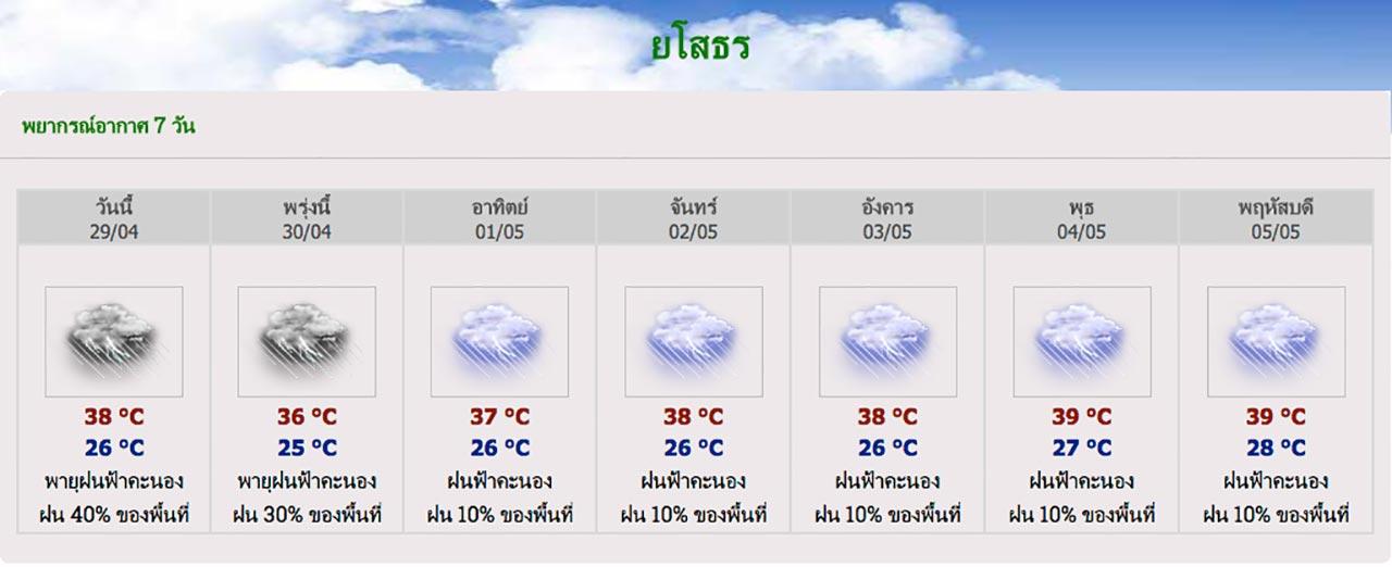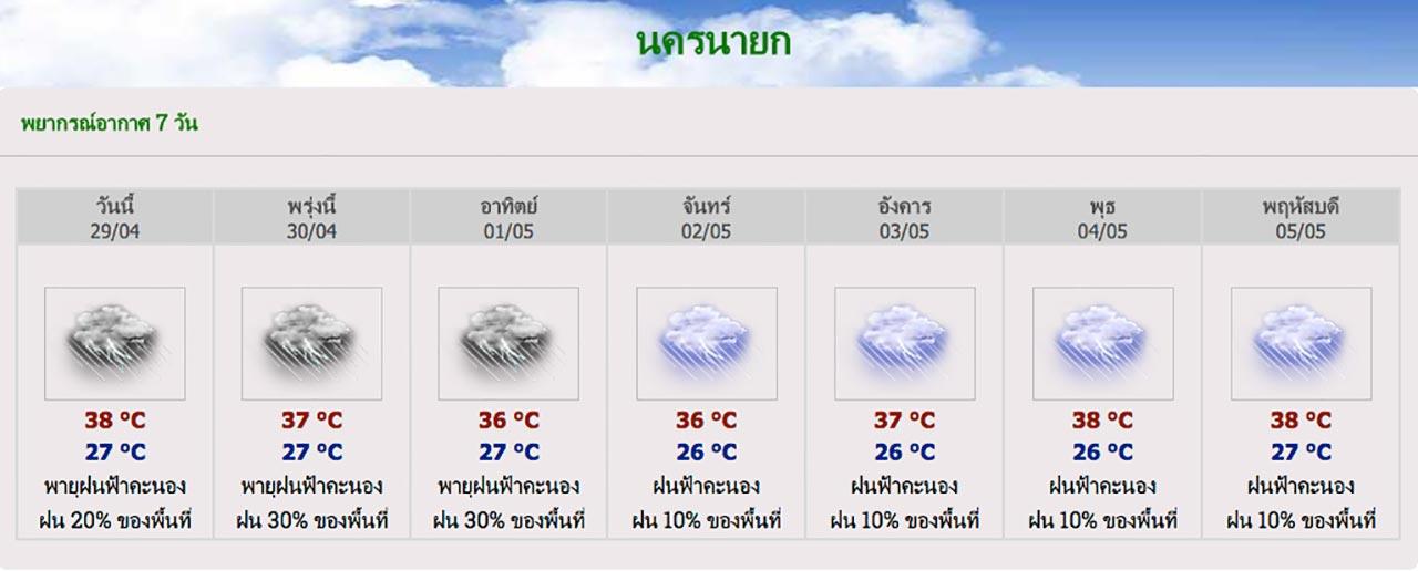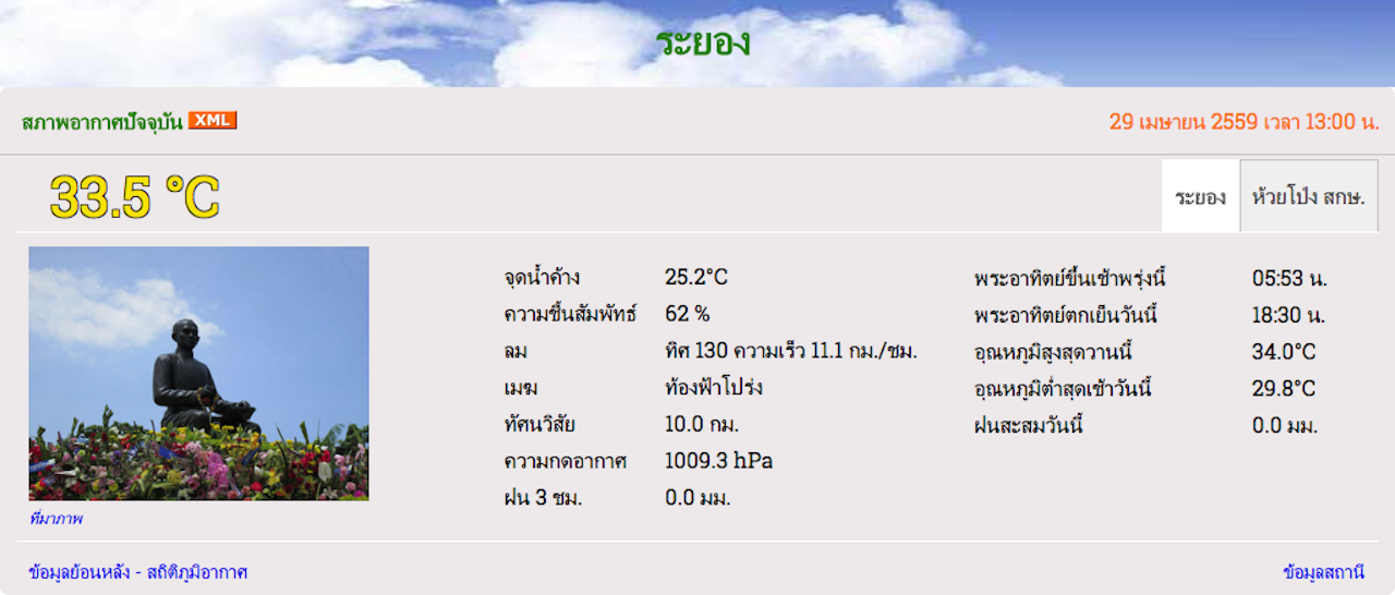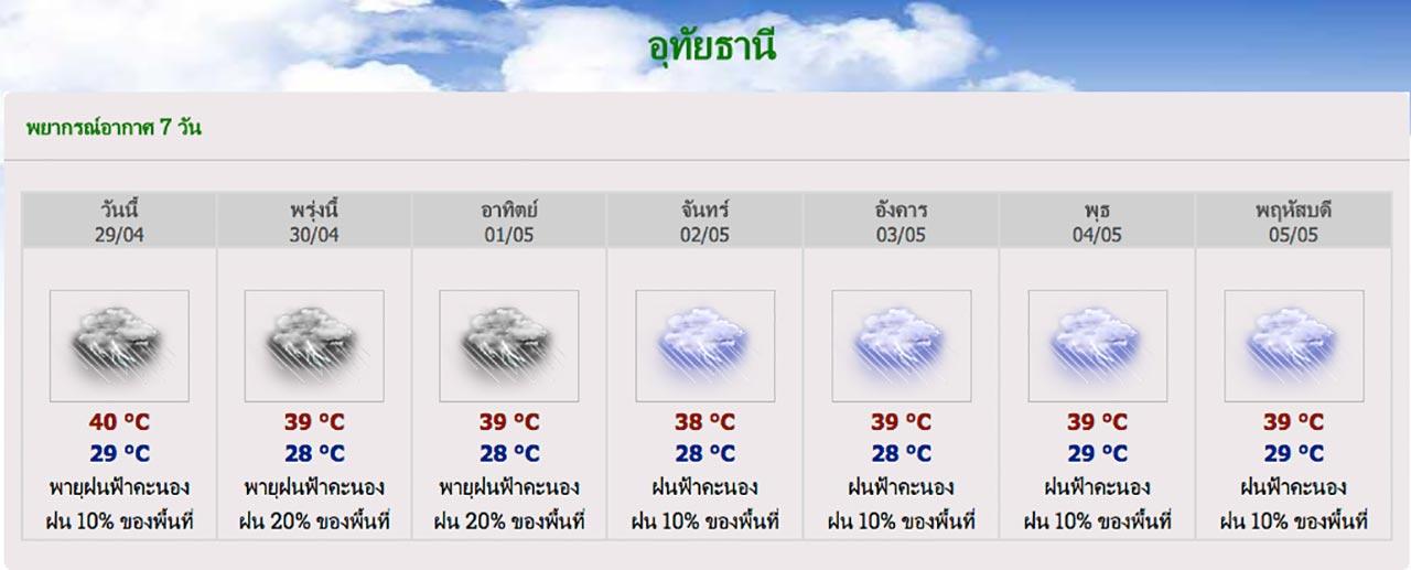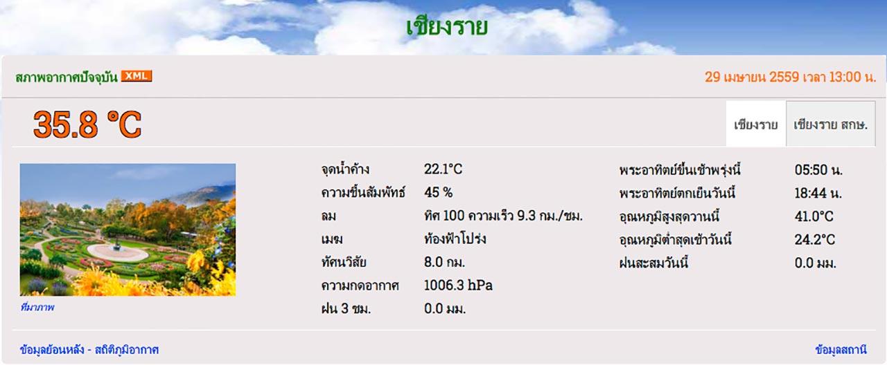 วันนี้ ไทยรัฐออนไลน์ รวบรวมเอาจังหวัดที่อุณหภูมิสูงที่สุด และอุณหภูมิต่ำที่สุดของ 5 ภาคทั่วประเทศไทยมาให้ดูกัน (ข้อมูล ณ วันที่ 29 เม.ย. 2559) ส่วนจะมีบ้านเกิดของคุณติดโผบ้างหรือเปล่า มาเช็กลิสต์กันเลย
