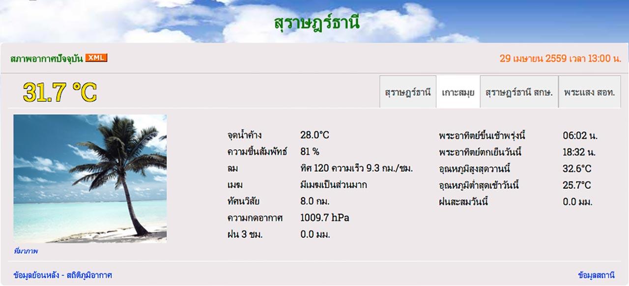 จังหวัดที่เย็นสบายที่สุด คือ เกาะสมุย สุราษฎร์ธานี วัดอุณหภูมิได้ 31.7 องศาเซลเซียส ส่วนจังหวัดที่ร้อนที่สุด ได้แก่ ตรัง อุณหภูมิพุ่งสูงถึง 37.2 องศาเซลเซียส