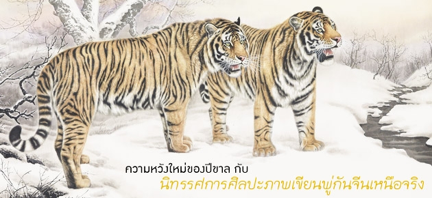 “โดยในงานแสดงภาพเขียนครั้งนี้ จะเน้นที่การแสดงภาพเขียน “เสือ” ซึ่งตรงกับสัญญลักษณ์แห่งปี 2553 ผู้ชมงานจะได้พบกับการแสดงออกซึ่ง 108 ท่วงท่าของเสือ ขนเสือที่มีเอกลัษณ์เฉพาะ ซึ่งไม่ง่ายแก่การถ่ายทอดให้สมจริง กว่าจะได้ขนเสือแต่ละเส้น ต้องวาดอย่างน้อย 6-7 รอบ บางครั้งอาจมากถึง 10 ครั้ง จึงจะสามารถแสดงออกซึ่งเอกลักษณ์และวิญญาณของเสือได้ การวาดภาพจะใช้เทคนิคการวาดแบบจีนดั้งเดิม ซึ่งจะแตกต่างจากศิลปินทั่วไป โดยเป็นการใช้สีจากพืชและหินแร่ธรรมชาติ มีคุณสมบัติที่ทำให้ภาพดูสะอาด บริสุทธิ์ เสมือนจริง และมีอายุในการเก็บสะสมเป็นเวลานาน”