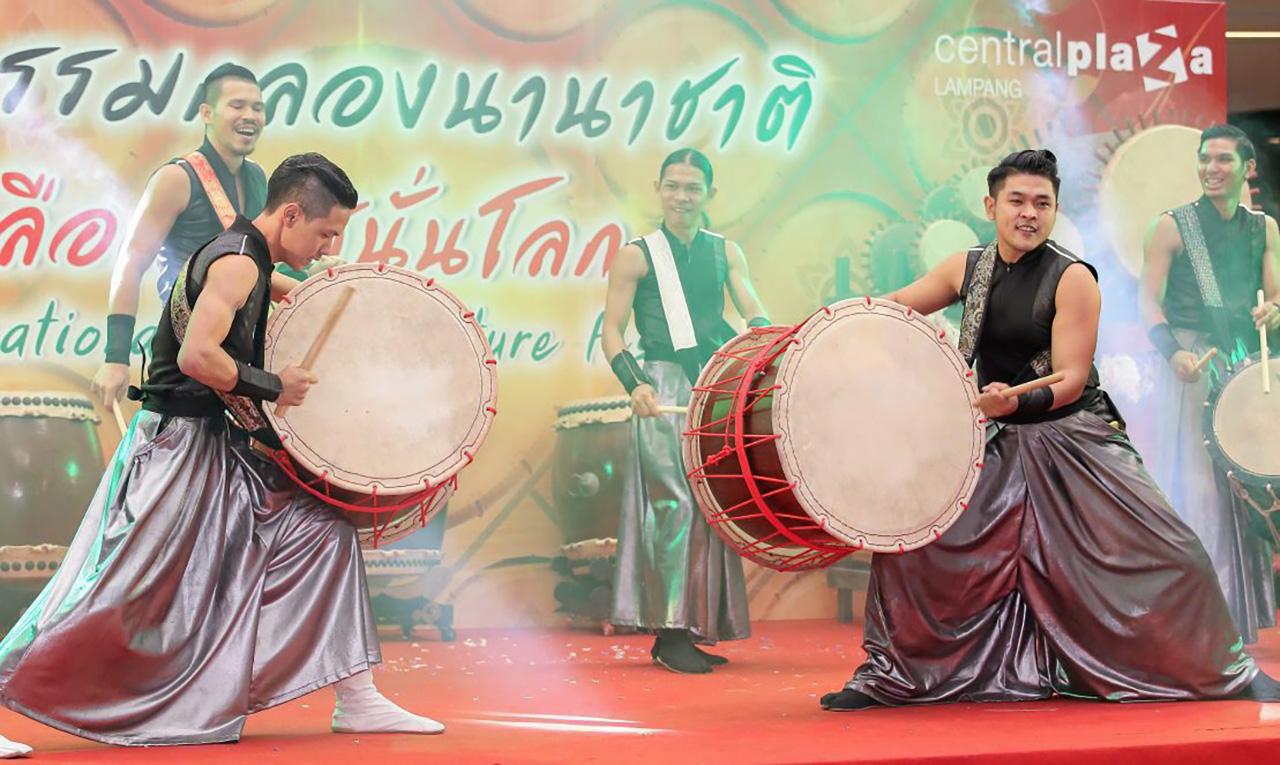 นอกจากนี้ ยังมีการแสดงตีกลอง นานาชาติ อาทิ กลองไทโกะ จากประเทศญี่ปุ่น, กลอง batucada samba จากประเทศบราซิล, กลองแอฟริกา จากประเทศแอฟริกา และการโชว์กลองแบบผสมผสาน ดิน น้ำ ลม ไฟ ในชุด Rhythm of the four element จากโชว์กลุ่ม Tiger Drum นิทรรศการกลองจากทั่วทุกมุมโลก และกลองพื้นเมืองล้านนา ของจังหวัดลำปาง พร้อมสนุกสานกับเกม Interactive Drum Games เกมส์เก็บกลอง บนกลองจำลอง ขนาดยักษ์สูงกว่า 3 เมตร ที่ยกมาให้สัมผัส ที่ชั้น 1 ลานรถม้า และลานร่ำเปิง หน้าศูนย์การค้าเซ็นทรัลพลาซา ลำปาง ระหว่างวันที่ 2-3 ก.ค.ศกนี้.