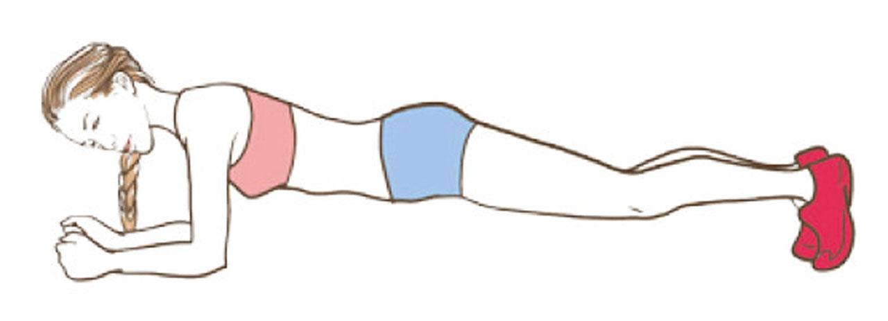 นอนคว่ำหน้า งอศอก แขนท่อนล่างแนบกับพื้น ทิ้งน้ำหนักลงที่ศอกและปลายเท้า เกร็งแกนกลางลำตัว หลังเป็นเส้นตรง ไม่เงยหน้า ไม่แอ่นหลังหรือยกสะโพกขึ้น หากทำถูกจะรู้สึกเกร็งที่แกนกลาง