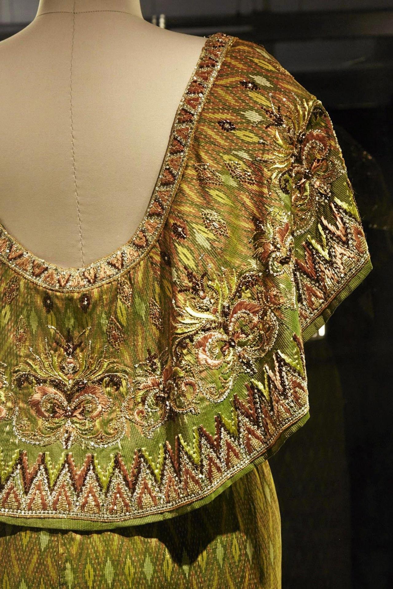 ฉลองพระองค์ชุดราตรี 2 องค์ องค์แรกตัดเย็บจากผ้าไหมมัดหมี่ลายโคมห้า ปักประดับลูกปัด พลอย และดิ้นทอง โดยสถาบันปักเลอซาจ ออกแบบโดย ปิแอร์ บัลแมง ทรงในงานพระราชทานเลี้ยงพระกระยาหารค่ำเป็นการส่วนพระองค์ ในโอกาสคล้ายวันเฉลิมพระชนมพรรษา ณ ศาลาดุสิดาลัย สวนจิตรลดา เมื่อปี 2522 อีกหนึ่งองค์ ตัดเย็บจากผ้าไหมมัดหมี่และหนัง ปักประดับฉลอง พระองค์คลุมบริเวณรอบคอและสาบเสื้อด้วยลูกปัด และเลื่อม ออกแบบโดย ปิแอร์ บัลแมง ทรงในงานพระราชทานเลี้ยงพระกระยาหารค่ำแด่เจ้าหญิงอเล็กซานดร้าและพระสวามี ในโอกาสที่เสด็จเยือนประเทศไทย ในฐานะพระราชอาคันตุกะส่วนพระองค์ ณ พระตำหนักทักษิณราชนิเวศน์ จ.นราธิวาส ปี 2523.