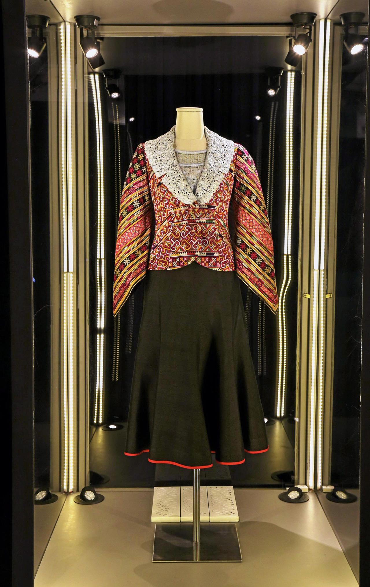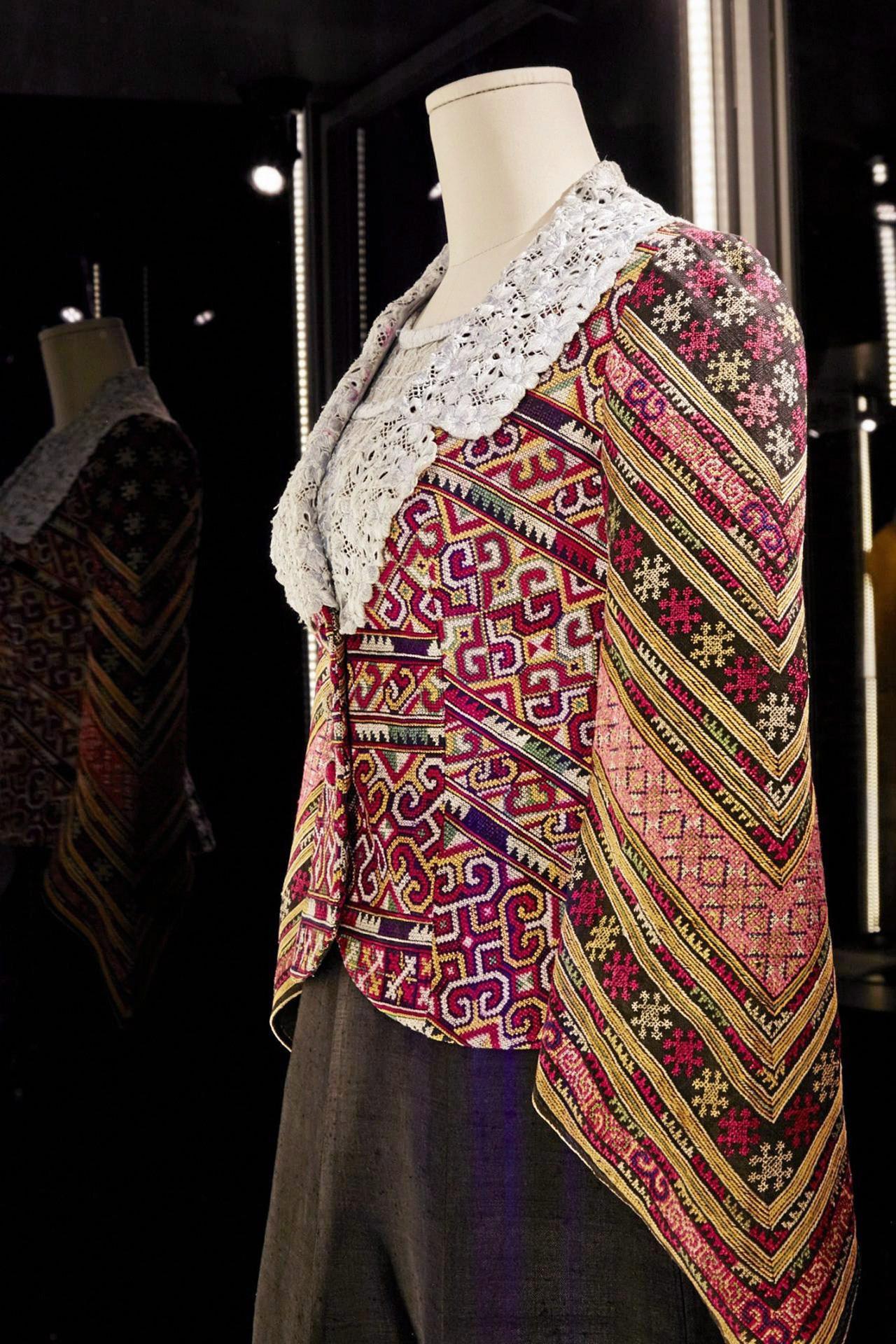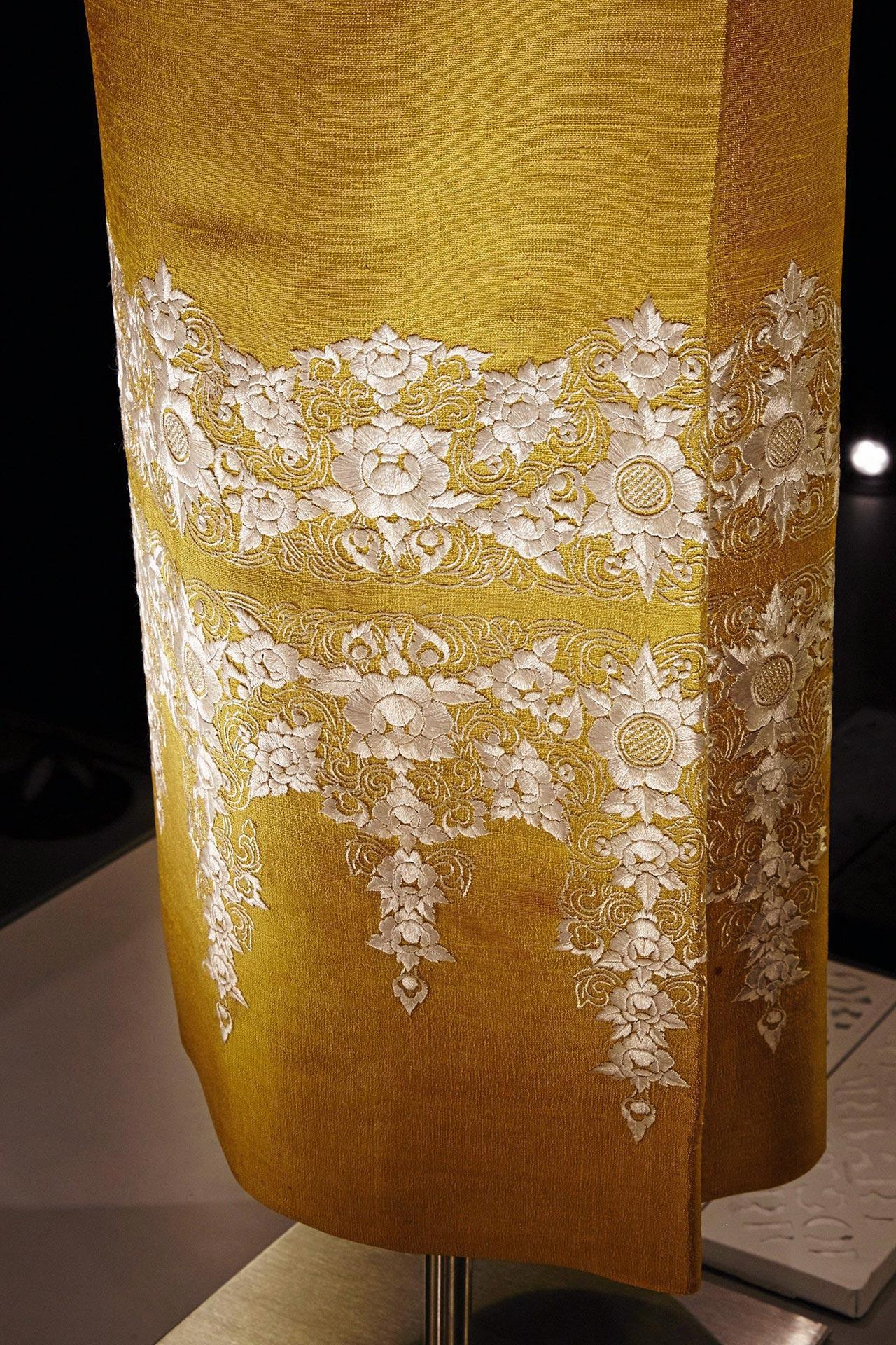 ฉลองพระองค์ที่นำมาจัดแสดง 7 องค์ ได้แก่ ชุดไทยจักรี ที่ทรงในการเสด็จฯไปในงานเลี้ยงอาหารค่ำ ซึ่งสหพันธ์พิทักษ์เด็กจัดขึ้นเนื่องในโอกาสครบรอบ 50 ปีของสหพันธ์ฯ ที่นครนิวยอร์ก สหรัฐอเมริกา เมื่อปี 2524 ฉลองพระองค์นี้ ตัดเย็บจากผ้ายกทองลายโคมพุ่มข้าวบิณฑ์สีทอง ปักประดับบริเวณสไบและจีบหน้าด้วยลูกปัดสีทองและลูกปัดมุก โดยสถาบันปักเลอซาจ สถาบันช่างปักชั้นสูงของประเทศฝรั่งเศส ออกแบบโดย ปิแอร์ บัลแมง นักออกแบบเสื้อผ้าชื่อดังระดับโลก เจ้าของห้องเสื้อ Balmain, ชุดไทยเรือนต้น ออกแบบโดย ห้องเสื้อนายน้อย ตัดเย็บจากผ้าไหมพื้น ปักประดับด้วยเส้นไหม สมเด็จ พระนางเจ้าฯ พระบรมราชินีนาถ ทรงเมื่อครั้งโดยเสด็จพระบาทสมเด็จ พระเจ้าอยู่หัว เสด็จฯไปทรงบำเพ็ญพระราชกุศลถวายผ้าพระกฐิน ณ วัดคูยาง จ.พิษณุโลก ปี 2515, ฉลองพระองค์แบบสากล ตัดเย็บจากผ้าไหมพื้นสีนวล และผ้าฝ้าย ตกแต่งบริเวณปลายแขนและชายพระสนับเพลา ด้วยผ้าปักชาวไทยภูเขา อีกองค์เป็นการตัดเย็บจากผ้าชาวไทยภูเขาเผ่าเย้า ผ้าลูกไม้ และผ้าใยสังเคราะห์ สุดท้าย ตัดเย็บจากผ้าไหมมัดหมี่ ผ้าลูกไม้ ผ้าใยสังเคราะห์ ปักประดับด้วยปีกแมลงทับ ไหมเงิน ไหมทอง เลื่อม และลูกปัด