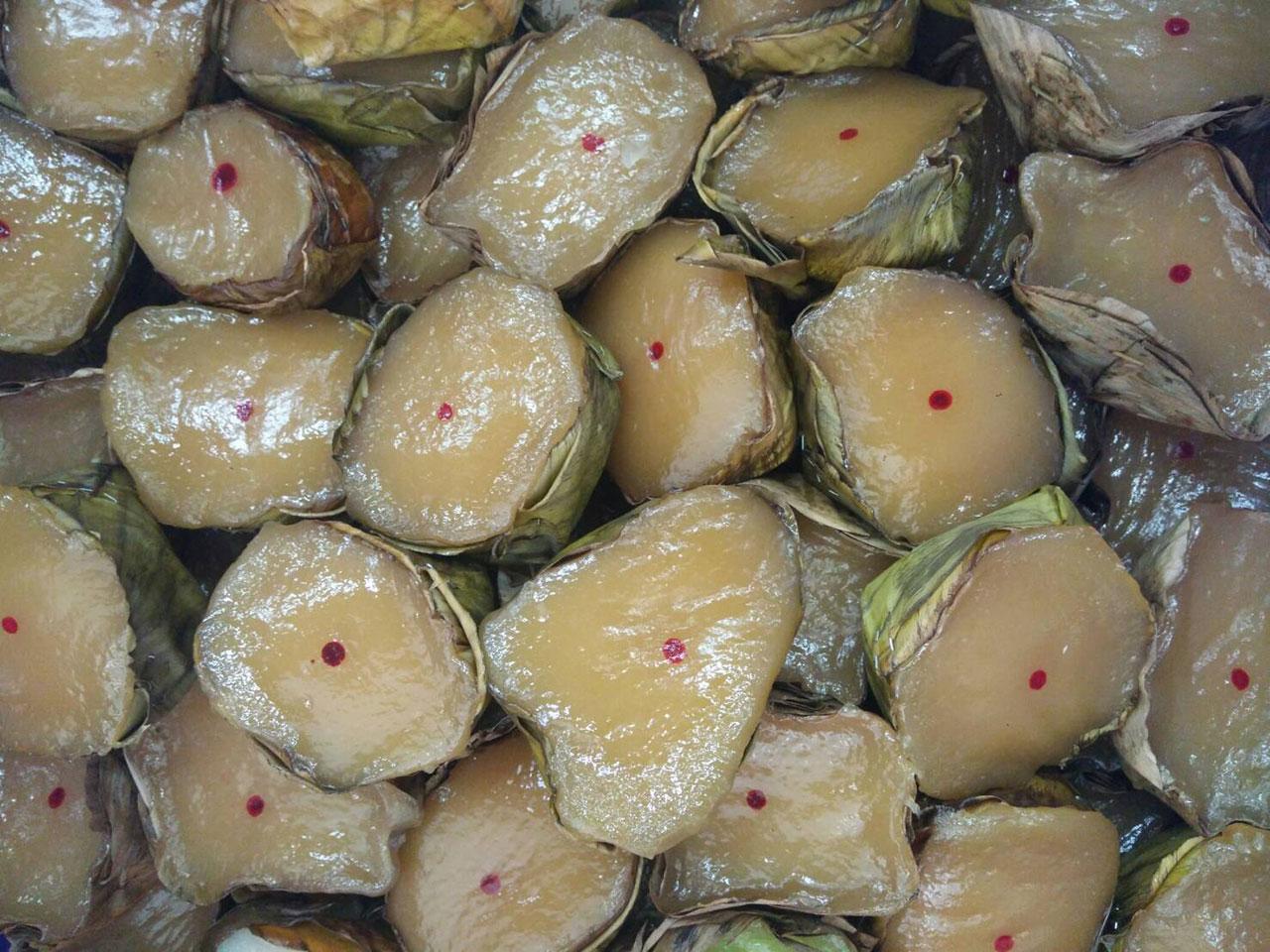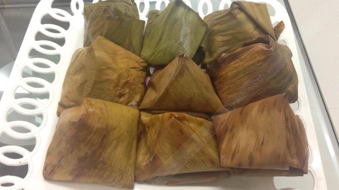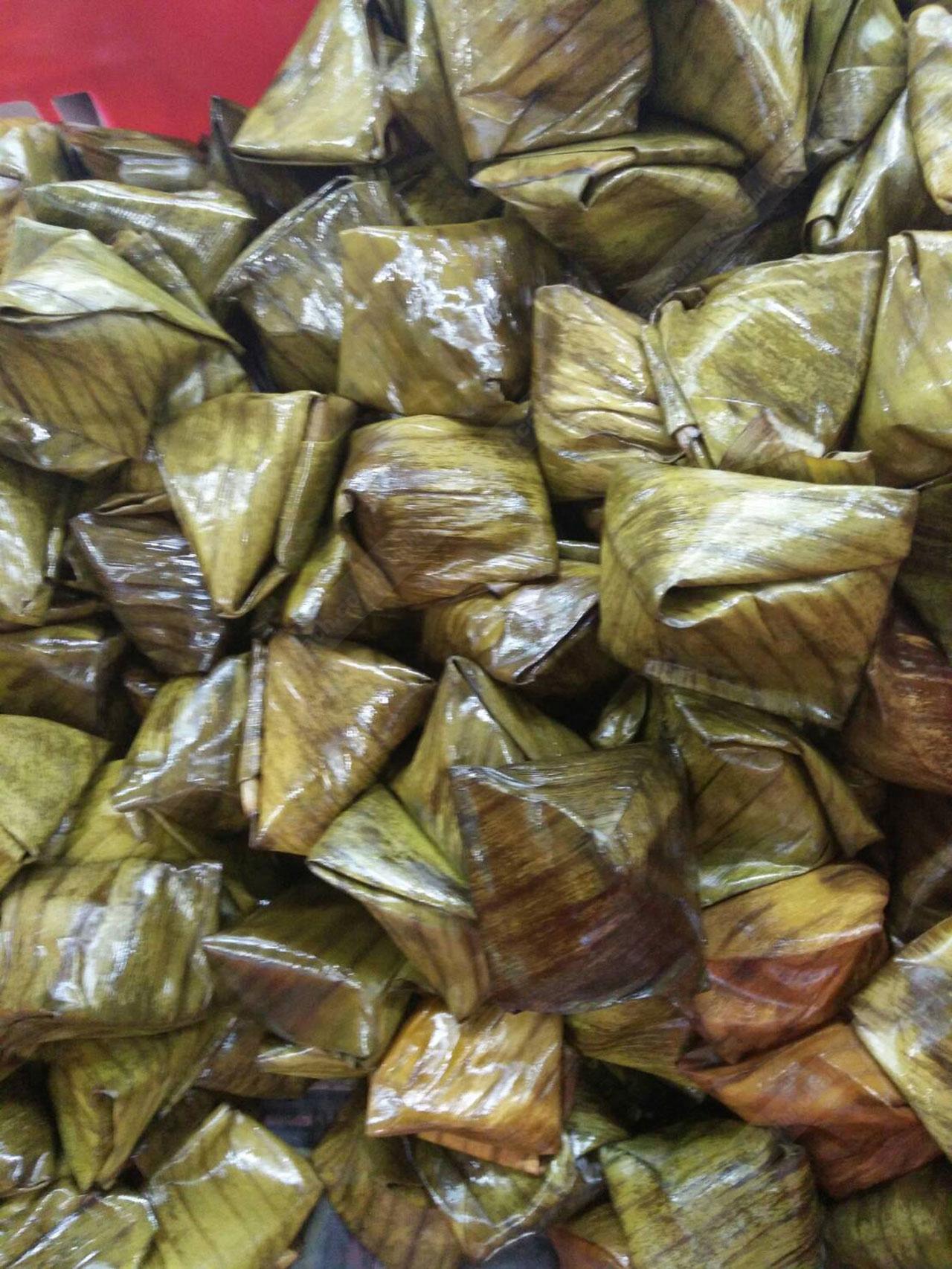 ของไหว้บรรพบุรุษ สถานที่ภายในบ้าน โต๊ะตั้งป้ายชื่อหรือรูปถ่ายบรรพบุรุษ ของไหว้ต้องมีนำ้ ซดให้คล่องคอ นำ้แกง ขนมนำ้ เช่น อี๊ (ขนมบัวลอย) วางร่วมสำรับกับชามใส่ข้าวสวย และนำ้ชา บางบ้าน นิยมวางชามใส่ข้าวสวย ชุดช้อนตะเกียบ และถ้วยนำ้ชา ตามจำนวนญาติผู้ใหญ่ และบรรพบุรุษ (ถ้าจำนวนไม่มากเกินไป) โหงวแซ (5 อย่าง) เป็ด, ไก่, หมู, ตับ, ปลา 3 อย่างเรียกซาแซ ของหวาน ขนมเข่ง ขนมเทียน ผลไม้ และกระดาษเงินกระดาษทอง