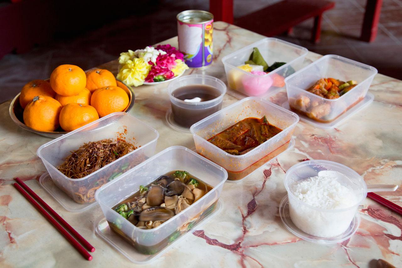ทั้งนี้ หลักๆ ที่ใช้ไหว้จะประกอบด้วย 1. กับข้าวที่บรรพบุรุษชอบและต้องมีต้มจืดและเส้นบะหมี่ 2. ชุดกระ ดาษเงิน-ทอง (มักจัดมาเป็นชุด) ที่ต้องมีคืออ่วงแซจี๊ ซึ่งเปรียบเสมือนใบเบิกทางให้บรรพบุรุษ 3. ผลไม้ที่มีความหมายดีๆ เช่น ส้มหมายถึงความโชคดี, องุ่นหมายถึงความงอกงาม, กล้วยหมายถึงการเรียกโชค 4. ขนม เช่น ขนมถ้วยฟู, ขนมเทียน, ขนมเข่ง