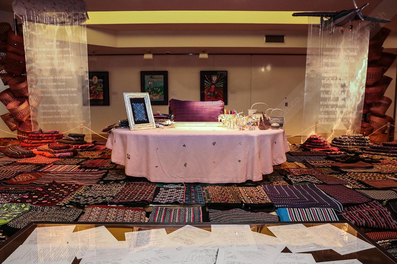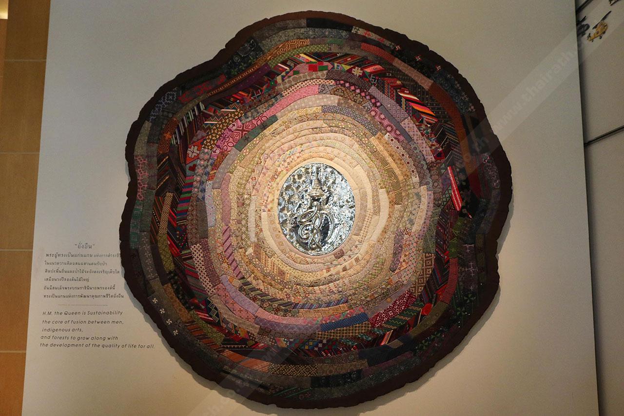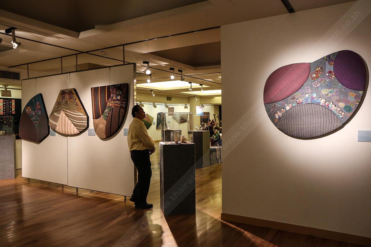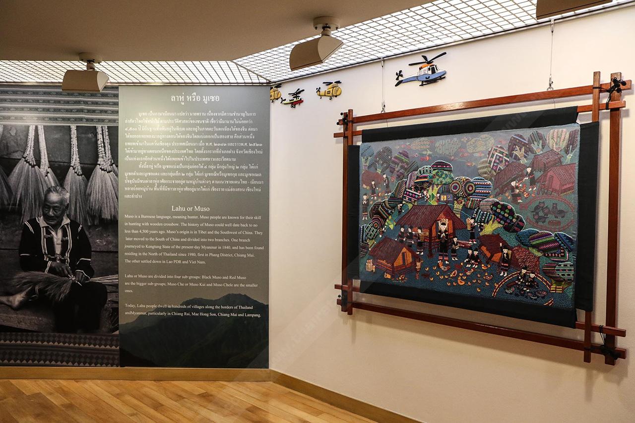 เมื่อไม่นานมานี้ ไทยรัฐออนไลน์ ได้มีโอกาสเข้าไปชม ต้องบอกเลยว่า แต่ละเผ่ามีการจัดแสดงศิลปะบนผืนผ้าที่แสดงถึงวิถีชีวิตของเผ่านั้นๆ อย่างชัดเจน เริ่มจากภายใน นิทรรศการชั้นที่ 1 เป็นการนำเสนอพระวิริยอุตสาหะของทั้งสองพระองค์ที่ทรงเปลี่ยนวิถีการทำมาหาเลี้ยงชีพของชาวไทยภูเขา ซึ่งช่วยให้คนสามารถอยู่ร่วมกับป่าได้อย่างยั่งยืน เป็นการถ่ายทอดในรูปเชิงสัญลักษณ์ เพื่อบอกเล่าถึงชีวิตชาวไทยภูเขาในอดีตก่อนที่ทั้งสองพระองค์จะเสด็จเยือน รวมทั้งพัฒนาการของวิถีชีวิตอย่างต่อเนื่องตราบจนปัจจุบัน