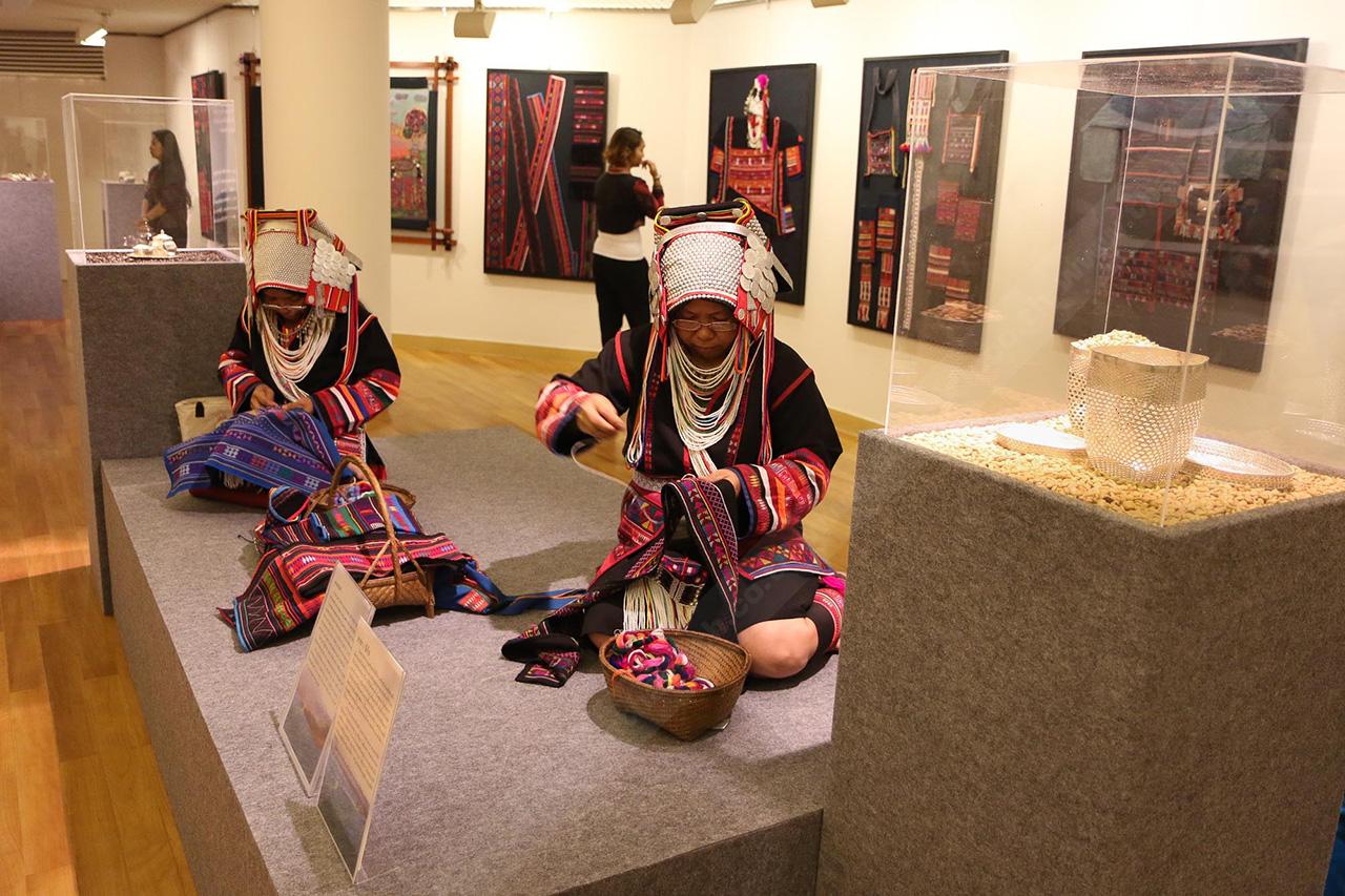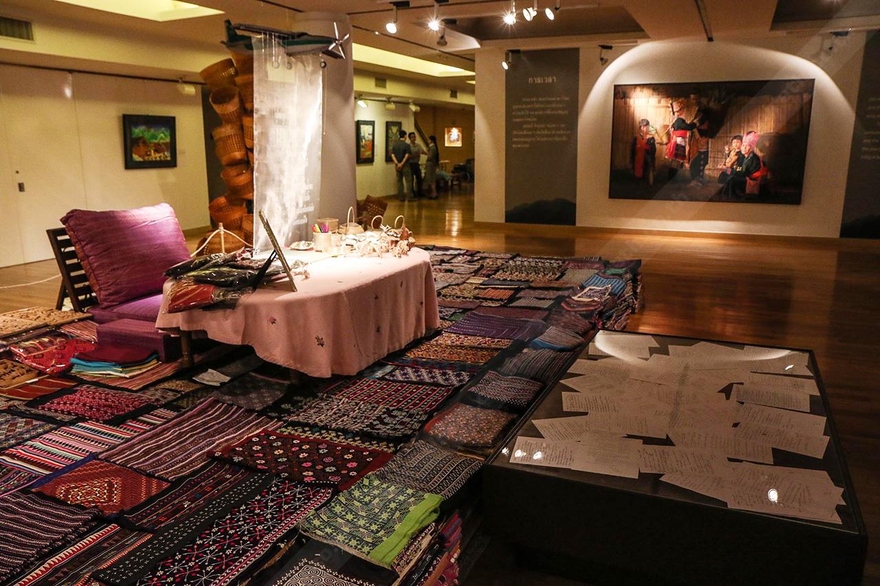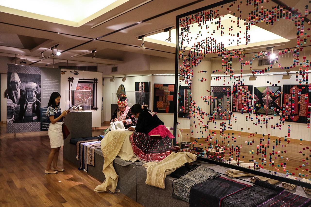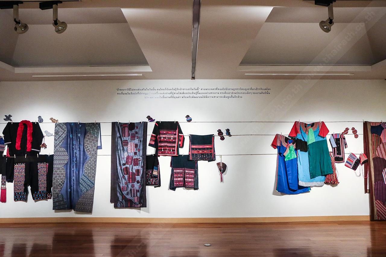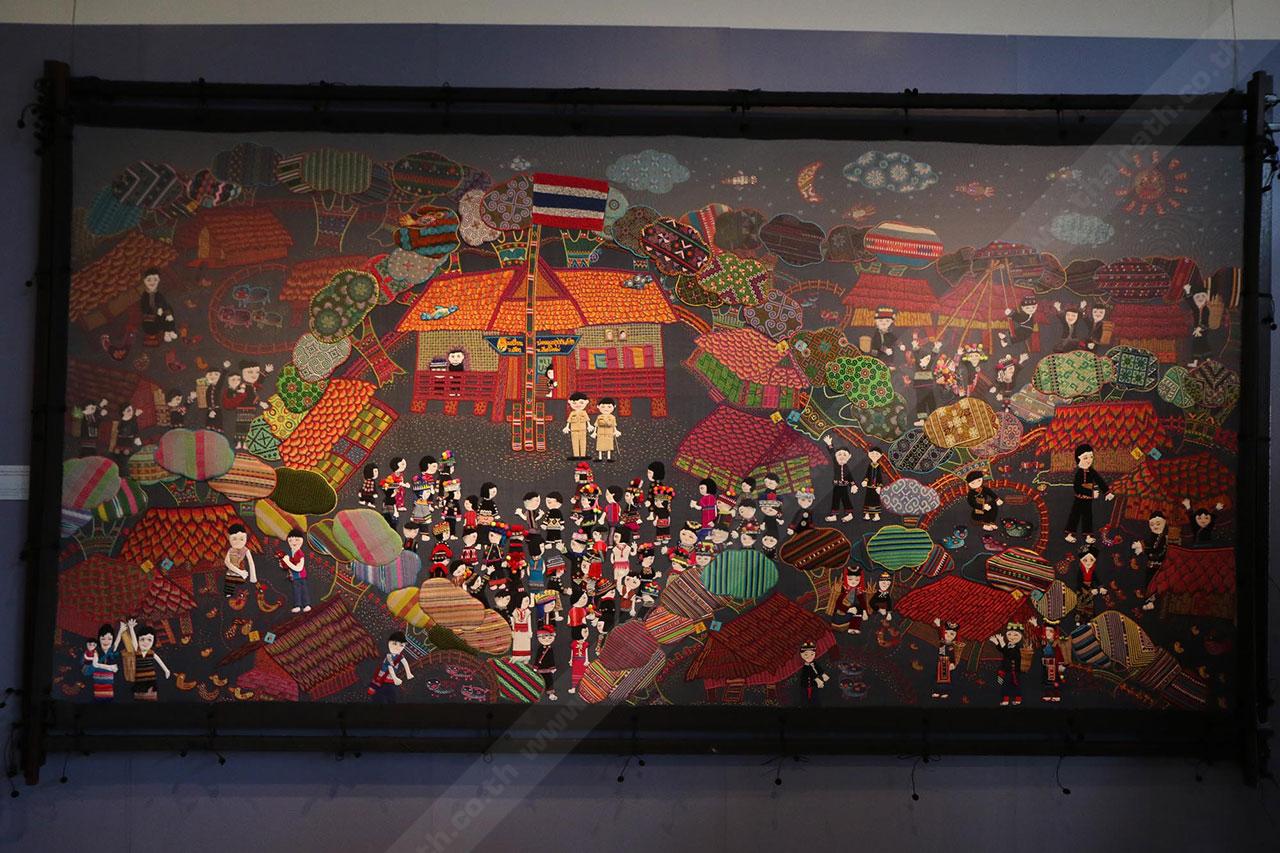 เมื่อไม่นานมานี้ ไทยรัฐออนไลน์ ได้มีโอกาสเข้าไปชม ต้องบอกเลยว่า แต่ละเผ่ามีการจัดแสดงศิลปะบนผืนผ้าที่แสดงถึงวิถีชีวิตของเผ่านั้นๆ อย่างชัดเจน เริ่มจากภายใน นิทรรศการชั้นที่ 1 เป็นการนำเสนอพระวิริยอุตสาหะของทั้งสองพระองค์ที่ทรงเปลี่ยนวิถีการทำมาหาเลี้ยงชีพของชาวไทยภูเขา ซึ่งช่วยให้คนสามารถอยู่ร่วมกับป่าได้อย่างยั่งยืน เป็นการถ่ายทอดในรูปเชิงสัญลักษณ์ เพื่อบอกเล่าถึงชีวิตชาวไทยภูเขาในอดีตก่อนที่ทั้งสองพระองค์จะเสด็จเยือน รวมทั้งพัฒนาการของวิถีชีวิตอย่างต่อเนื่องตราบจนปัจจุบัน