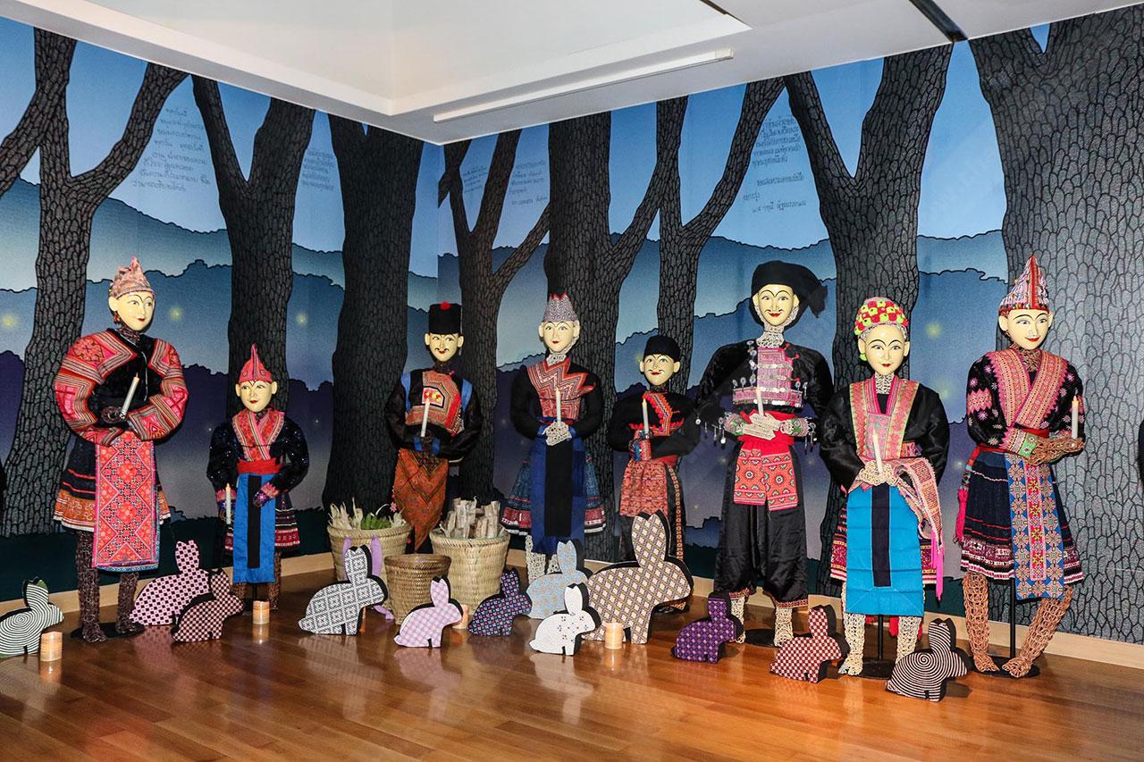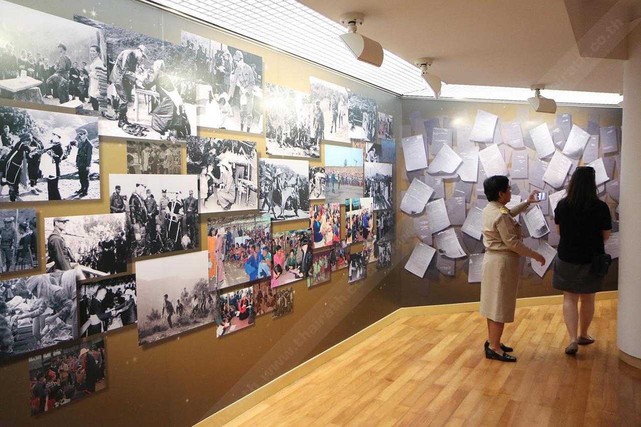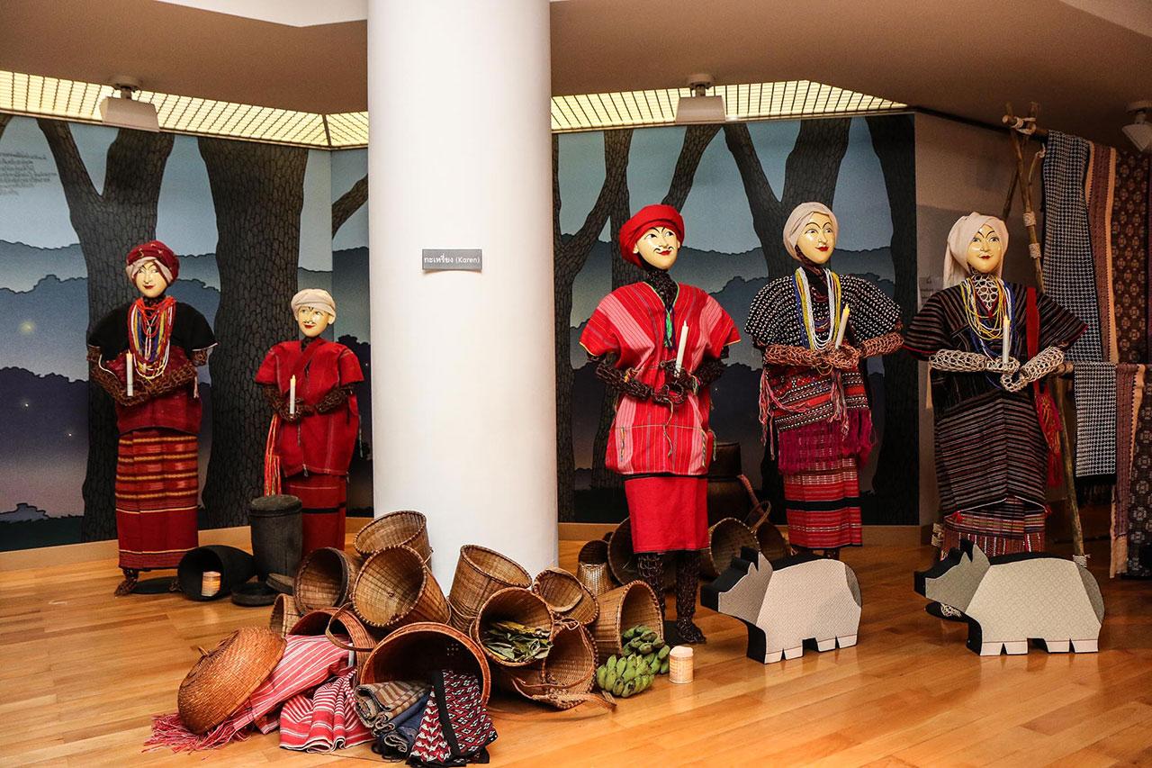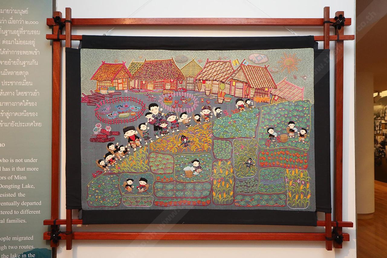 เมื่อไม่นานมานี้ ไทยรัฐออนไลน์ ได้มีโอกาสเข้าไปชม ต้องบอกเลยว่า แต่ละเผ่ามีการจัดแสดงศิลปะบนผืนผ้าที่แสดงถึงวิถีชีวิตของเผ่านั้นๆ อย่างชัดเจน เริ่มจากภายใน นิทรรศการชั้นที่ 1 เป็นการนำเสนอพระวิริยอุตสาหะของทั้งสองพระองค์ที่ทรงเปลี่ยนวิถีการทำมาหาเลี้ยงชีพของชาวไทยภูเขา ซึ่งช่วยให้คนสามารถอยู่ร่วมกับป่าได้อย่างยั่งยืน เป็นการถ่ายทอดในรูปเชิงสัญลักษณ์ เพื่อบอกเล่าถึงชีวิตชาวไทยภูเขาในอดีตก่อนที่ทั้งสองพระองค์จะเสด็จเยือน รวมทั้งพัฒนาการของวิถีชีวิตอย่างต่อเนื่องตราบจนปัจจุบัน