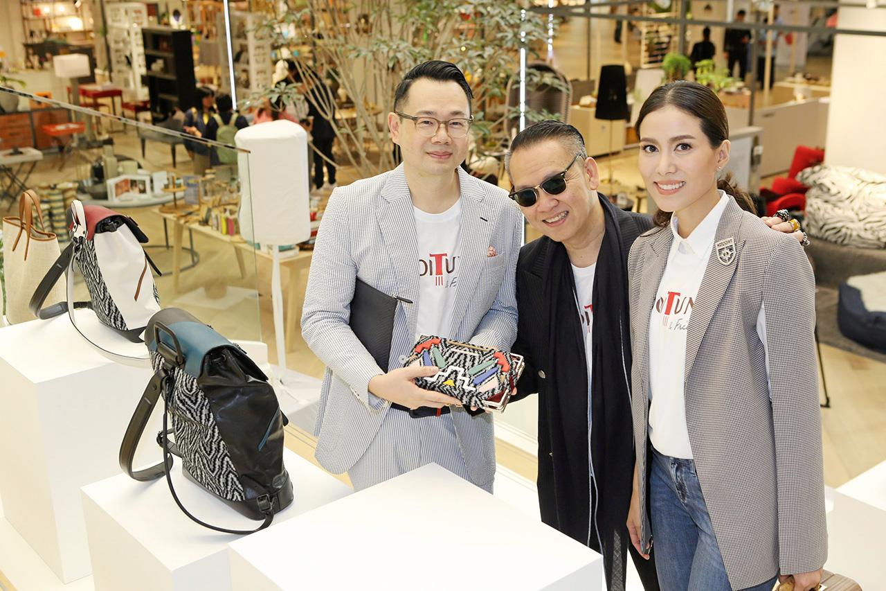 โดย ตือ–สมบัษร ร่วมออกแบบ พรมยิง อีกหนึ่งผลิตภัณฑ์ชื่อดังของดอยตุง ตั้งชื่อผลงานว่า “ทูเดย์ อิส มาย กู๊ด เดย์” มาจากแนวคิด “ถ้าเราเชื่อมั่นว่า วันนี้เป็นวันที่ดี ทุกๆวันก็จะเป็นวันที่ดีด้วย” มีทั้งหมด 3 ลาย ลายละ 3 ชิ้น ขายในราคาผืนละ 29,999 บาท ขณะที่ กุลวิทย์ เลาสุขศรี เลือกนำผ้าทอฝีมือชนเผ่ามาออกแบบเป็นกระเป๋าดีไซน์ โมเดิร์น ซึ่งได้รับความร่วมมือจาก 3 แบรนด์แฟชั่นของคนไทย Metique, Nasha, Lapas สร้างสรรค์กระเป๋าในแบบต่างๆ ส่วน เข็มอัปสร สิริสุขะ เลือกผลิตภัณฑ์กระดาษสาของชาวดอยตุงมาออกแบบเป็นชุดเครื่องเขียนกระดาษสา ชื่อ Le Voyage des Fleurs ซึ่งแปลว่า การเดิน ทางของดอกไม้ แรงบันดาล ใจจากพระราชจริยวัตรของสมเด็จย่า ที่โปรดการนำดอกไม้แห้งมาประดับการ์ดอวยพร และพระราชทานแก่ข้าราชบริพารในโอกาสต่างๆ สร้างสรรค์ออกมา เป็นชุดเครื่องเขียนลายผ้าทอประดับผนังท้องพระโรงในพระ ตำหนักดอยตุง ผลิตจำนวน 15 ชุด ราคาชุดละ 4,999 บาท