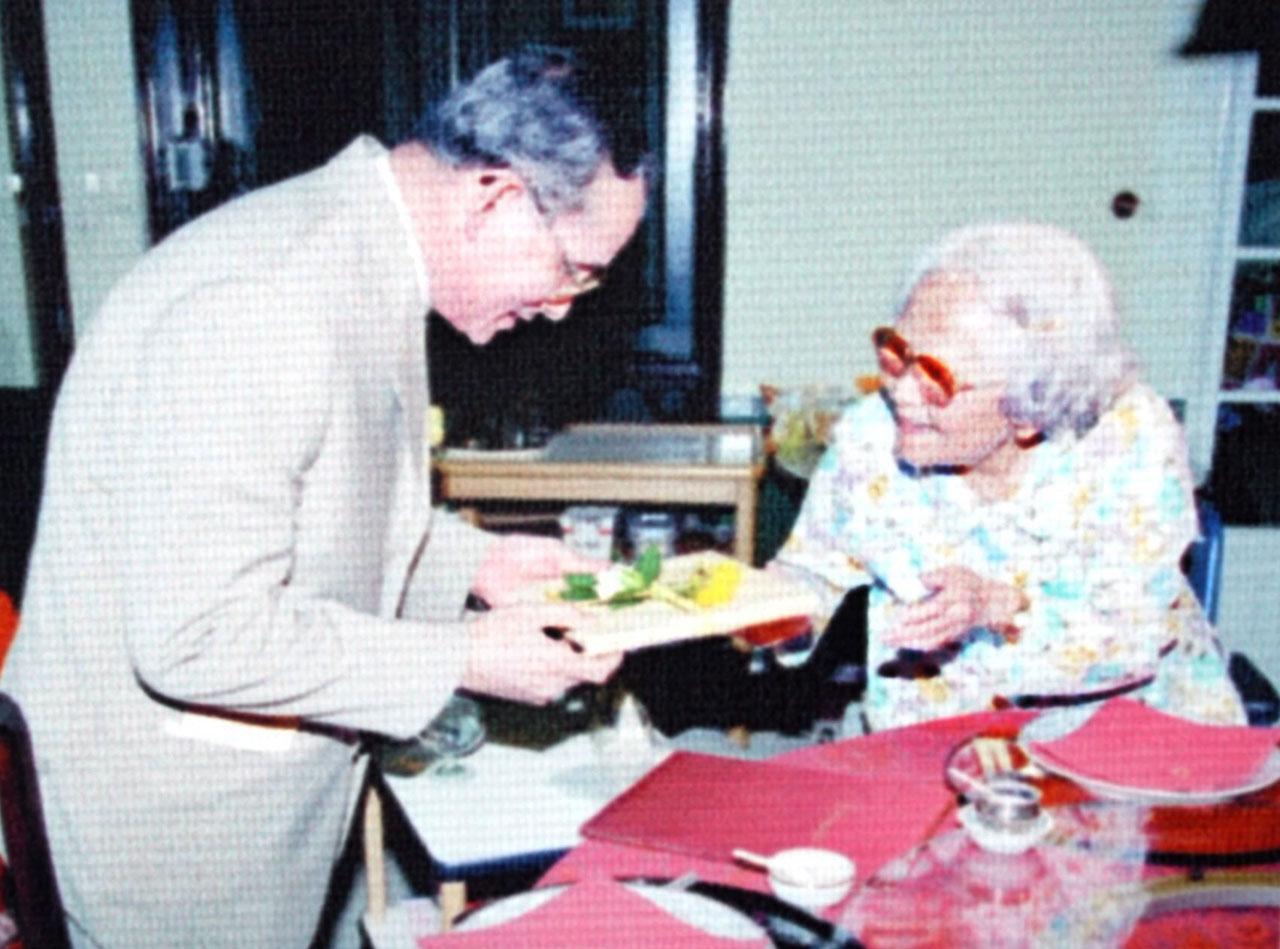 มหาดเล็กกราบบังคมทูลว่า ไม่เป็นไร ไม่ต้องเข็น มีพยาบาลเข็นให้อยู่แล้ว แต่ในหลวงมีรับสั่งว่า “แม่ของเรา ทำไมต้องให้คนอื่นเข็น เราเข็นเองได้” ในหลวงทรงเป็นถึงพระมหากษัตริย์ ยังทรงเข็นรถให้แม่ ยังทรงป้อนข้าวป้อนน้ำป้อนยาให้แม่