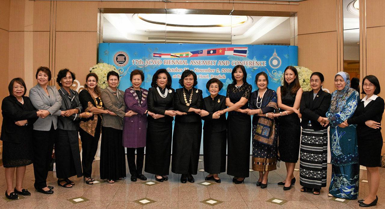 สภาสตรีแห่งชาติในพระบรมราชินูปถัมภ์ ในฐานะประธานสหพันธ์สภาสตรีอาเซียน วาระ พ.ศ. 2557-2559 เป็นเจ้าภาพจัดการประชุมสมาพันธ์สตรีอาเซียน (ASEAN Confederation of Women’s Organisation-ACWO) ครั้งที่ 17 “THE UN 2030 SDGS : ACWO LEADING ASEAN WOMEN TOWARDS APROSPEROUS ECONOMY, SOCIAL HARMONY AND SUSTAINABLE ENVIRONMENT.” เพื่อเสริมสร้างความรู้ความเข้าใจในเรื่องการพัฒนาที่ยั่งยืน ด้านเศรษฐกิจ สังคม และสิ่งแวดล้อม รวมถึงเสริมสร้างความเข้าใจในเรื่องความเสมอภาคระหว่างเพศและสิทธิสตรี ให้เกิดการพัฒนาที่ยั่งยืน โดยมีองค์กรสมาชิก จำนวน 10 ประเทศ บวก 1 ได้แก่ บรูไน, กัมพูชา, อินโดนีเซีย, ลาว, มาเลเซีย, เมียนมา, ฟิลิปปินส์, สิงคโปร์, ไทย และ เวียดนาม ประเทศบวกหนึ่งคือ จีน เข้าร่วมการประชุมที่โรงแรมใบหยก สวีท ประตูน้ำ เมื่อวันที่ 31 ต.ค.ที่ผ่านมา