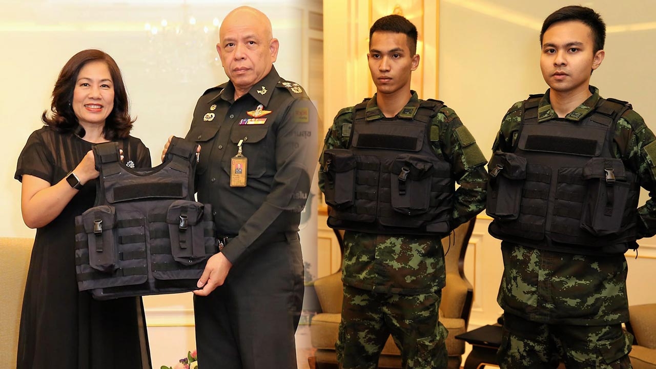 ภัทรพร เพ็ญประพัฒน์ มอบเสื้อเกราะแก่ พล.อ.สสิน ทองภักดี เพื่อใช้ในภารกิจ 3 จังหวัดชายแดนใต้.