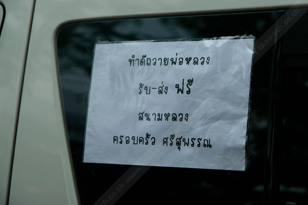 ขณะที่โชเฟอร์ "เสน่ห์ ศรีสุพรรณ" สามีพี่กุ๊กไก่ ผู้นำพาทุกคนไปสักการะพ่อหลวง ระบุว่า ผมไม่อยากให้ทุกคนเอารถไป อยากให้ทุกๆ คนช่วยไปรถสาธาณะ ไม่อย่างนั้นแล้วรถจะติดรอบๆ สนามหลวงมาก ไปรถตู้ฟรี ไปรถบัสฟรีที่เค้าให้บริการอยู่ แล้วขากลับสามารถไปรอรถฟรีที่ด้านหน้ามหาวิทยาลัยธรรมศาสตร์ ท่าพระจันทร์