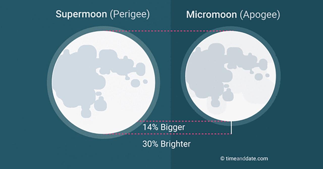 สำหรับซุปเปอร์ฟูลมูนในวันที่ 14 พ.ย. 2559 ดวงจันทร์เต็มดวงจะปรากฏในตำแหน่งใกล้โลกมากที่สุดในรอบปี ที่ระยะห่างประมาณ 356,511 กิโลเมตร มีขนาดปรากฏใหญ่กว่าปกติเล็กน้อย โดยมีขนาดปรากฏใหญ่กว่าขณะอยู่ไกลโลกมากที่สุดประมาณ 14% และมีความสว่างมากกว่าปกติประมาณ 30%
