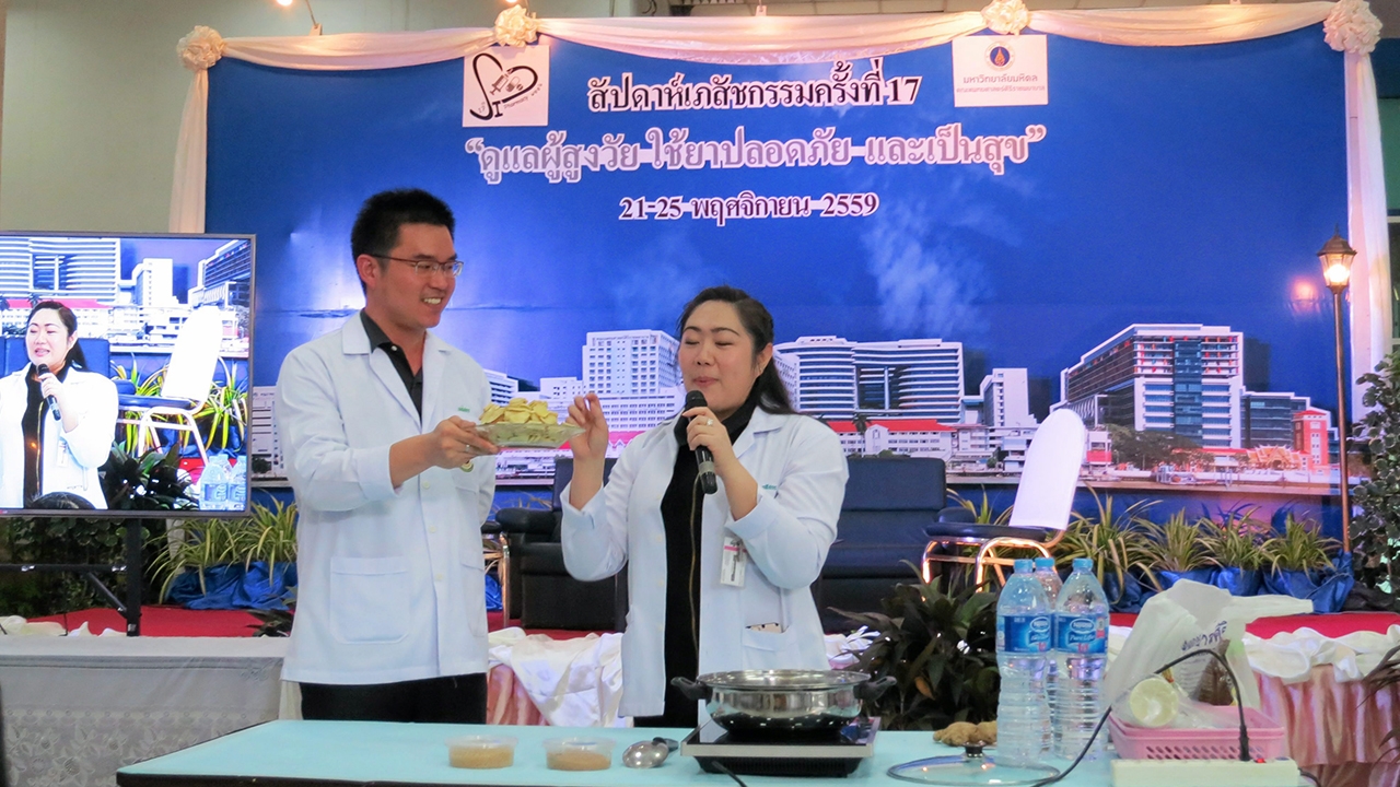 สมุนไพรไทยหากใช้อย่างถูกวิธีมีประโยชน์มากมาย ทั้งช่วยป้องกันและบรรเทาอาการของโรคต่างๆได้ เพื่อส่งต่อความรู้ในทางวิชาการให้แก่ภาคประชาชน คณะแพทยศาสตร์ศิริราชพยาบาล มหาวิทยาลัยมหิดล โดยฝ่ายเภสัชกรรม รพ.ศิริราช จึงจัดกิจกรรม “สัปดาห์เภสัชกรรม ครั้งที่ 17 ดูแลผู้สูงวัย ใช้ยาปลอดภัยและเป็นสุข” ให้ความรู้ในหัวข้อ “ขิงไทยพิชิตอาการคลื่นไส้จากยาเคมีบำบัด” โดยมี ภก.ตรัย ธารพานิช มาเป็นวิทยากรที่บริเวณโถงอาคาร 100 ปี สมเด็จพระศรีนครินทร์ รพ.ศิริราช