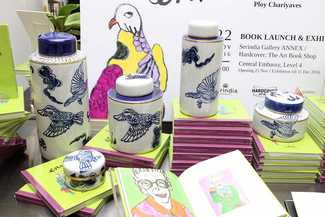 พลอย จริยะเวช เล่าถึงเส้นทางของบทบาทนักเขียนกว่า 20 ปี สู่บทบาทอาร์ติสท์ ไรเตอร์ กับผลงานหนังสือภาพเล่มแรกในชีวิตว่า เป็นนักเขียนที่แอบวาดรูปมานานแล้ว แต่วาดจริงจังประมาณช่วง 3-4 ปีหลังมานี้ โดยเริ่มหัดวาดรูปจากสิ่งที่เห็นรอบตัว และพบว่าเมื่อวาดบ่อยๆ งานดีขึ้นมาก พอมีโซเชียล มีเดีย ก็เหมือนมีที่แสดงงานภาพส่วนตัว วาดเสร็จก็โพสต์ในเฟซบุ๊กเรื่อยๆ ซึ่งได้กลายเป็นแกลเลอรี่ ที่ทำให้มีพอร์ตโฟลิโองานวาดโดยไม่รู้ตัว จากนั้นมีรุ่นพี่ที่ย้ายไปอยู่ปารีส ซึ่งชอบรูปที่เราวาดมาก ทั้งชมและเชียร์มาตลอด ได้ชักชวนและนำงานของเราไปลองเสนอให้ทีมงาน Asiatides ซึ่งเป็นองค์กรที่มีชื่อเสียงด้านการคัดสรรของตกแต่งบ้านรายใหญ่ในอันดับต้นๆ ของประเทศฝรั่งเศส จนได้ทำงานร่วมกันในที่สุด เค้าบอกว่าผลงานของเรามีความเป็นหมวยผสมกับความเป็นแหม่ม เป็นผลงานที่ผสมผสานระหว่างความเป็นตะวันตกและตะวันออกอย่างลงตัว ซึ่งการได้ร่วมงานกับ Asiatides ต้องใช้คำว่าเหลือเชื่อ และเป็นคนไทยคนเดียวในสังกัดท่าม กลางศิลปินและดีไซเนอร์ระดับท็อปของวงการ อาทิ Fa-bienne Jouvin, Kenzo, Nathalie Lété, Christian Tortu ฯลฯ โดยการวาดภาพเพื่อนำไปพิมพ์ลงภาชนะกระเบื้องรูปทรงต่างๆ ที่มีความโค้งมน มีมิติ ดังนั้น ต้องวางลายสำหรับการมองด้านข้าง ด้านบน มองใกล้และไกลด้วย ถือเป็นทักษะใหม่ที่ต้องเรียนรู้ด้วยตัวเอง และศิลปินในสังกัดของ Asiatides ที่เรียกว่า Artist & Designer ต้องออกแบบและจัดวางลายเองทุกคน ดังนั้น จึงเป็นความภาคภูมิใจอย่างมากที่ผลงานทั้ง 8 ชิ้นในคอลเลกชั่น Envol Collection ได้วางจำหน่ายที่บูธของ Asiatides ในงาน Maison et Objet 2016 ซึ่งเป็นงานแฟร์ของใช้ของตกแต่งที่ดีที่สุดในโลก ที่ปารีส เมื่อกันยายนที่ผ่านมา.