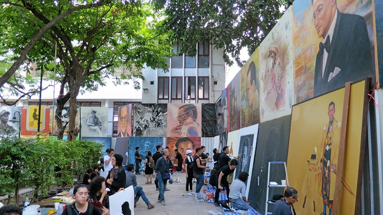 ความงดงามของการรวมใจของชาวศิลปากร โดย สมาคมนักศึกษาเก่าคณะจิตรกรรมประติมากรรม และภาพพิมพ์ และคณะจิตรกรร ประติมากรรม และภาพพิมพ์ มหาวิทยาลัยศิลปากร ในการน้อมรำลึกในพระมหากรุณาธิคุณของพระบาทสมเด็จพระปรมินทรมหาภูมิพลอดุลยเดช ผ่านผลงานจิตรกรรมและประติมากรรมตามถนัด ในกิจกรรม “ศิลปากรรวมใจถวายพ่อหลวง” ที่ตั้งใจสร้างผลงานการวาดภาพพระ บรมฉายาสาทิสลักษณ์ และงานประติมากรรม รวมทั้งสิ้น 89 ผลงาน ได้เสร็จสิ้นลงแล้ว โดยได้รวมตัวทำงานครั้งที่ 3 ครั้งสุดท้าย ที่บริเวณลานอนุสาวรีย์ศาสตราจารย์ศิลป์ พีระศรี มหาวิทยาลัยศิลปากร เมื่อวันที่ 26-27 พ.ย. ที่ผ่านมา