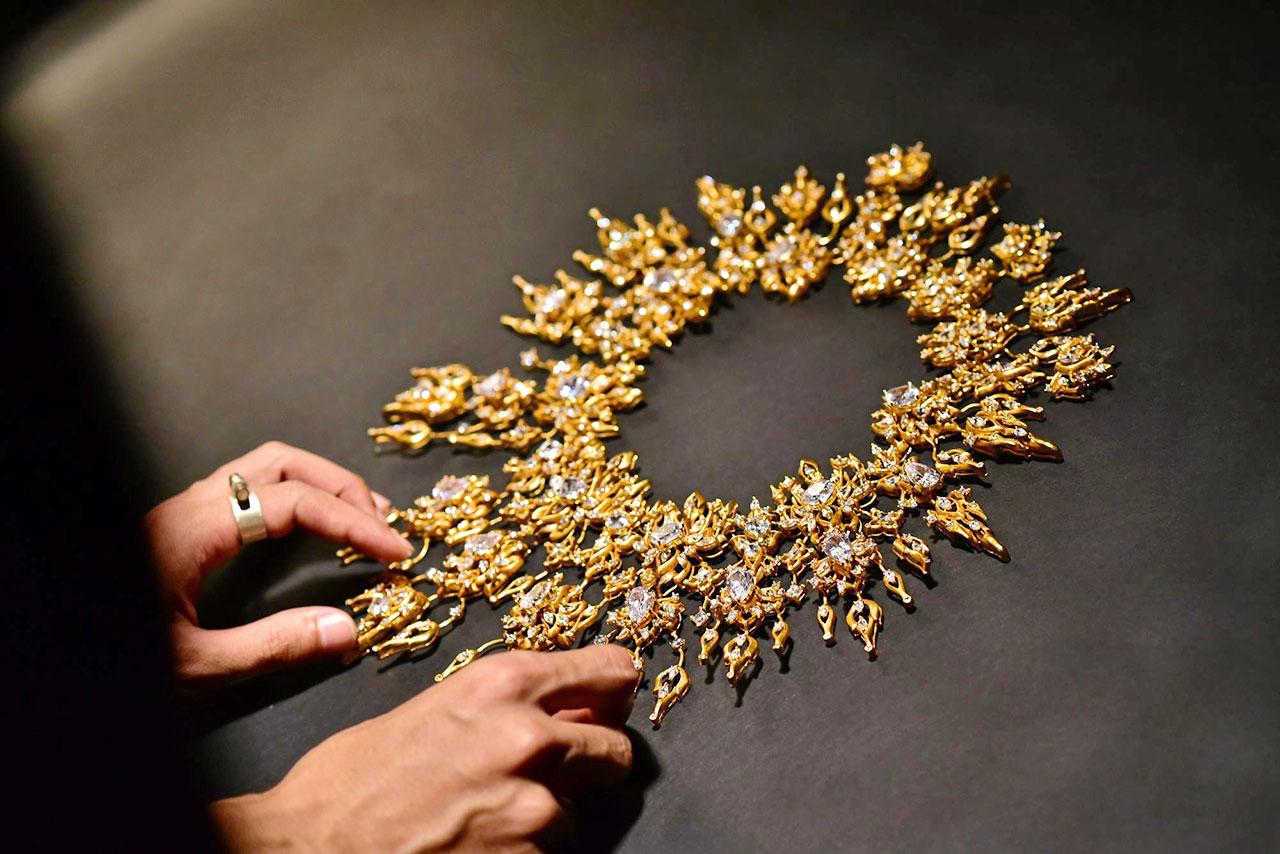 ชิชญาส์ กรรณสูต ผู้จัดการกองประกวดมิสยูนิเวิร์สไทยแลนด์ กล่าวว่า กองประกวดฯ ได้รับการสนับสนุนจาก ททท.ในการประกวดแบบและผลิตชุดประจำชาติอย่างเป็นทางการ พร้อมกับได้รับความอนุเคราะห์ ในการผลิตตัดเย็บชุดและทำเครื่องประดับจากหน่วยงาน และผู้เชี่ยวชาญที่ถือเป็นครูช่างด้านศิลปะเครื่องแต่งกายและเครื่องประดับไทยอีกหลายท่าน จนอาจกล่าวได้ว่า Jewel of Thailand ไม่เป็นแต่เพียง “ชุดประจำชาติ” แต่เป็น “งานศิลปะที่รวมศาสตร์และศิลป์ในการผลิตและตัดเย็บชุดไทย” ที่รวมช่างศิลป์ไทยทุกแขนงมาทำงานร่วมกันมากที่สุด ด้วยงานปักผ้าชั้นสูงระดับ Haute Couture (โอต์ กูตูร์) ที่สร้างสรรค์ลายปักขึ้นใหม่แบบ Art Deco และประยุกต์จากงานออกแบบตกแต่งอย่างไทยในพระบรมมหาราชวัง และงานปักของเลอซาจ (Lesage) คือการปักด้วยดิ้นทองผสมกับเพชรของ Swarovski นับแสนเม็ดบนชุดสีทอง เพื่อให้เกิดประกายแวววาวเมื่อกระทบแสงไฟ ซึ่งต้องใช้ทั้งฝีมือการปักอันประณีตและใช้ความอดทนมุ่งมั่น จนทำให้ Jewel of Thailand ที่ได้แรงบันดาลใจในการออกแบบจากฉลองพระองค์ของสมเด็จพระนางเจ้าสิริกิติ์ พระบรมราชินีนาถ มีความวิจิตรงดงามและสื่อถึงวัฒนธรรมการแต่งกายชุดไทยและศิลปหัตถกรรมไทยได้อย่างสมบูรณ์