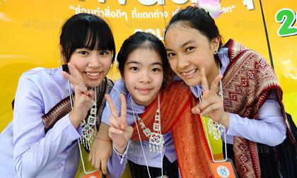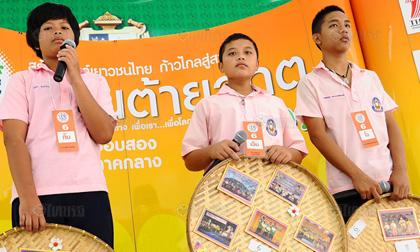 น้องๆจาก ร.ร.บึงโขงหลงวิทยาคม จ.หนองคาย กำลังนำเสนอโครงการ"รักบึงร่วมใจต้านภัยยาเสพติด".