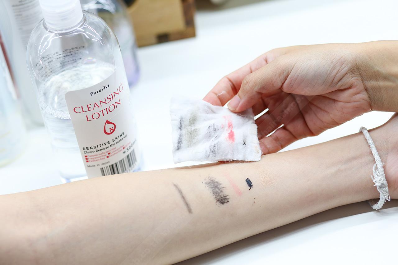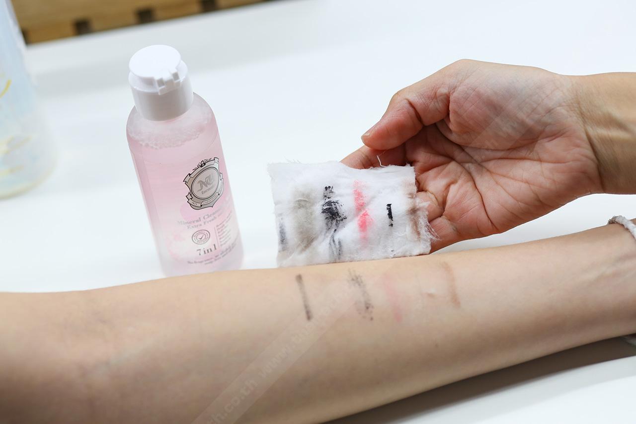 ทดลองใช้ : เห็นเป็นน้ำใสๆ แบบนี้ แต่พอเราลองใช้ดูพบว่า มันมีความหนืดอยู่นิดหน่อย พอปาดลงไปบนผิวหน้า เออมันนุ่มจริงๆ นะเนี่ย ตรงนี้ให้คะแนนเต็มไปเลย เช็ดได้ลื่นผิว เครื่องสำอางหลุดง่าย สำหรับการเช็ดรองพื้น แป้ง ครีมกันแดดทั่วใบหน้า เราใช้สำลีแค่ 2 แผ่นเอง ล้างเครื่องสำอางออกง่ายสุดๆ แต่สำหรับดวงตา แนะนำให้ใช้ Eye Remover จะดีกว่านะจ๊ะ