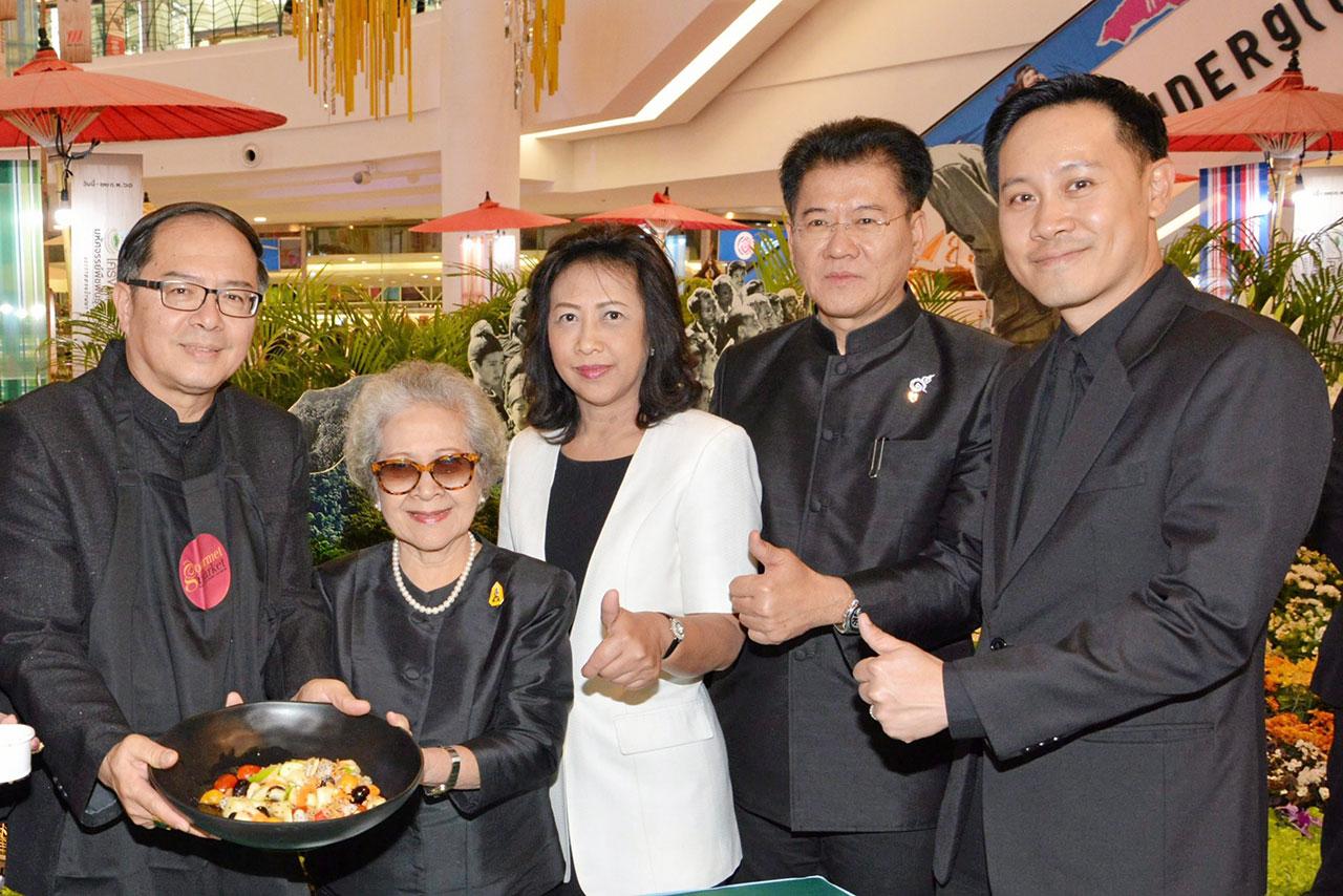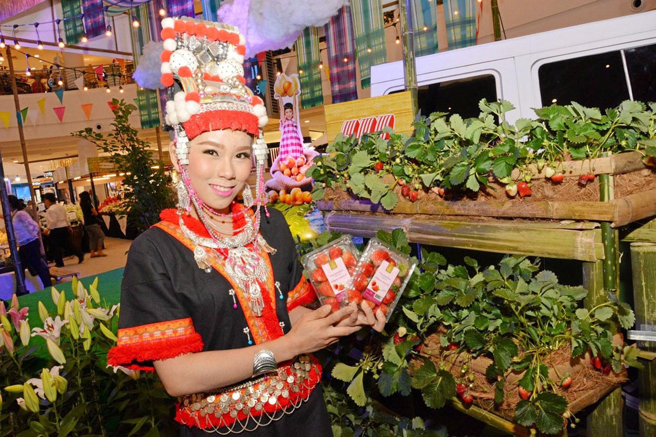 เดอะมอลล์ โคราช ร่วมกับ มูลนิธิโครงการหลวง จัดงาน “เทศกาลสินค้าโครงการหลวง” ในรูปแบบกาดดอยล้านนา โดยนำผลิตผลและผลิตภัณฑ์คุณภาพจากยอดดอย พร้อมเมนูปรุงพิเศษมาเสิร์ฟแก่ชาวโคราชได้ลิ้มรสชาติความอร่อย นายชัยรัตน์ เพชรดากูล ผู้จัดการใหญ่บริหารสินค้าซุปเปอร์มาร์เกต เดอะมอลล์ กรุ๊ปกล่าวถึงการจัดงานนี้ว่า เพื่อให้คนโคราชและจังหวัดใกล้เคียงได้มาสัมผัสกับผลิตภัณฑ์คุณภาพ และลิ้มรสชาติเมนูปรุงพิเศษด้วยวัตถุดิบจากโครงการหลวง ซึ่งโดยปกติกูร์เมต์ มาร์เก็ต ซุปเปอร์มาร์เกต ในกลุ่มเดอะมอลล์ กรุ๊ป ได้มีการเผยแพร่ และจำหน่ายสินค้าโครงการหลวงมาอย่างต่อเนื่องในทุกสาขา แต่งานนี้ถือเป็นครั้งแรกที่ได้นำวัตถุดิบคุณภาพจากโครงการหลวงทั้งผักสดและผลไม้ จากยอดดอยสู่ที่ราบสูง โดยนำมาปรุงเป็นเมนูพิเศษในแบบอีสาน ได้แก่ “ส้มตำเคปกูส เบอรี่” เพราะส้มตำถือเป็นอาหารขึ้นชื่อของชาวอีสาน นำมาผสมผสานอย่างลงตัวกับเคปกูสเบอรี่ ที่มีความหอมหวานอมเปรี้ยว เมนูนี้จึงช่วยเพิ่มความสดชื่นให้กับคนชอบทานส้มตำได้เป็นอย่างดี, เมนู “ลาบไก่ประดู่หางดำ” ซึ่งใช้ไก่ประดู่หางดำจากโครงการหลวงที่มีเนื้อแน่นนุ่ม ไม่ยุ่ย และมีหนังที่หนากรอบกว่าไก่ทั่วไป ทำให้เหมาะกับการนำมาปรุงเมนูลาบ และยังมีเมนู “ไก่ประดู่หางดำย่างพริกไทยดำกับน้ำจิ้มแจ่ว” ซึ่งมีรสชาติกลมกล่อมสามารถเทียบเคียงกับไก่ย่างพื้นเมืองของชาวโคราชได้, เมนู “ซุปเห็ดพอร์โท-เบลโล่และแซลมอนโครงการหลวง” ปรุงจากเห็ดพอร์โทเบลโล่ที่มีคุณประโยชน์ช่วยย่อยอาหาร, ลดความดันโลหิต, ยับยั้งการเติบโตของเซลล์มะเร็ง ฯลฯ นอกจากจะมีรสชาติอร่อยกลมกล่อมยังมีคุณประโยชน์ที่ดีต่อสุขภาพด้วย