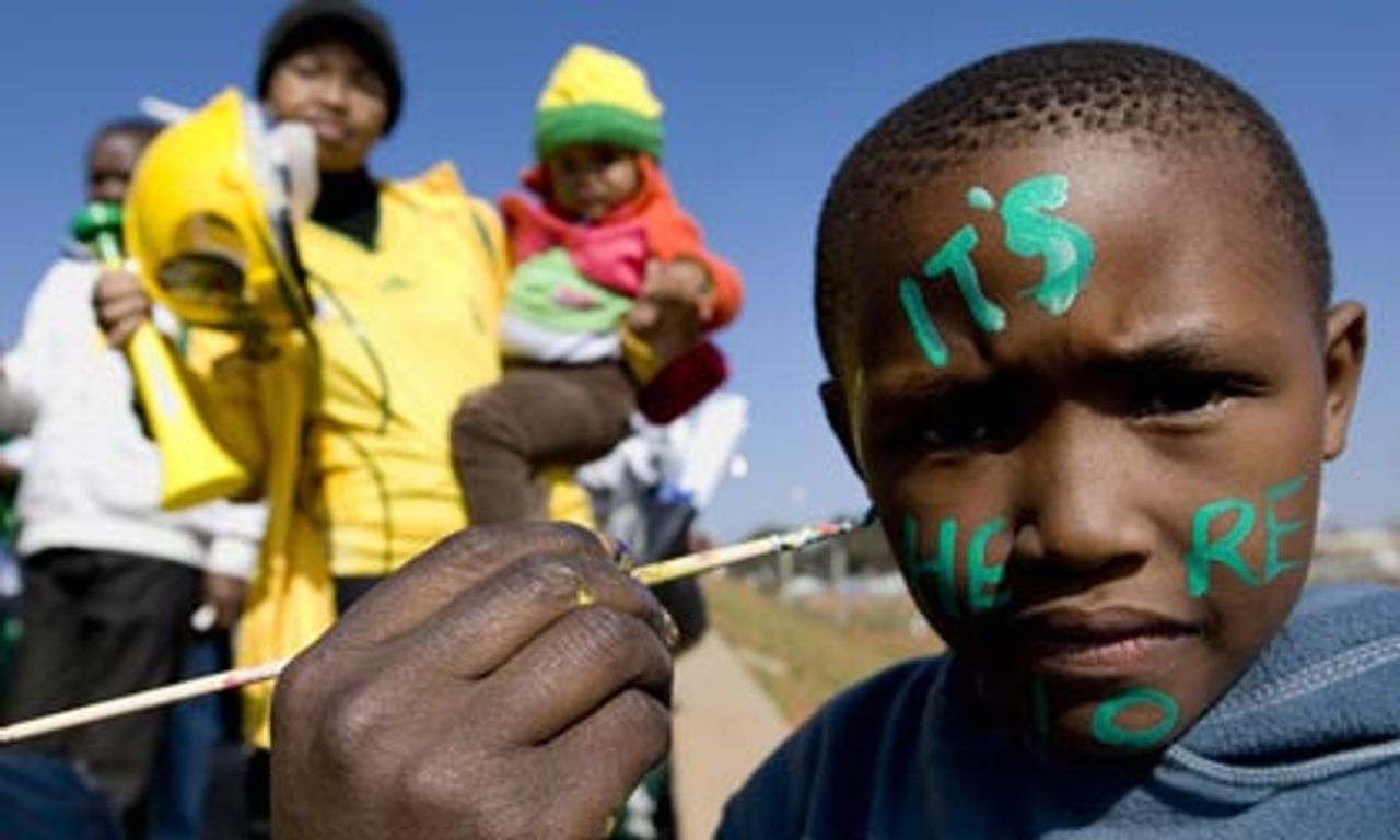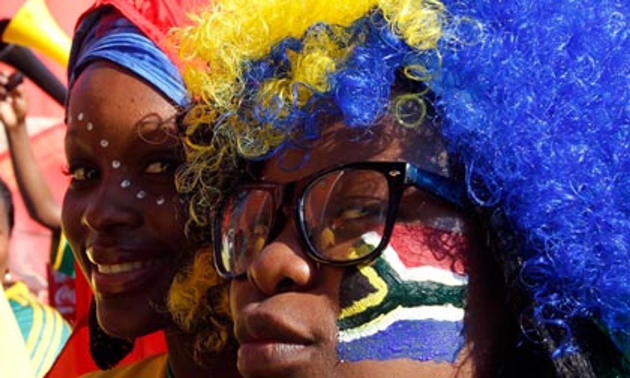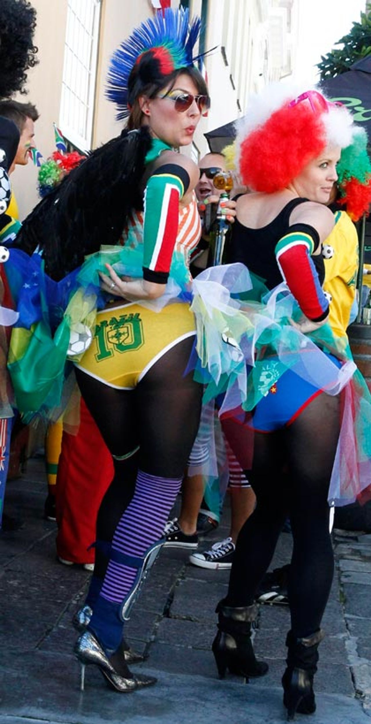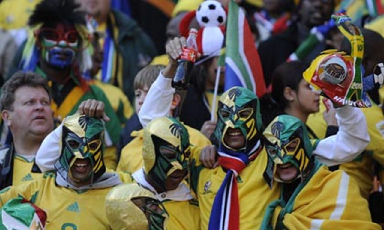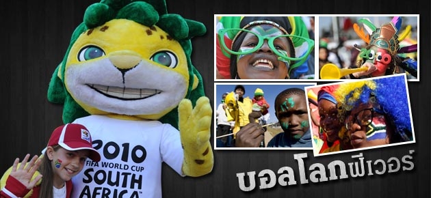 ไม่ได้ดูพิธีเปิดก็ไม่ เป็นไรนะคะ พาไปชมสีสันของกองเชียร์ตามขอบสนามเวิลด์คัพแทนก็ได้ แฟนบอลจากทั่วโลกต่างเตรียมอุปกรณ์ มาประชันกันเต็มที่ เพราะถือเป็นโอกาสทองในการแจ้งเกิดต่อหน้าผู้ชมทั่วโลก สำหรับแฟนบอลท้องถิ่นครึ่งค่อนประเทศที่ไม่มีเงินซื้อบัตรเข้าชมก็หาความสุขได้ง่ายๆ จากการชมโปรเจกเตอร์ขนาดใหญ่ที่ติดตั้งอยู่ตามย่านสำคัญๆทั่วกรุงโยฮันเนสเบิร์ก ขณะที่แฟนบอลชาวอังกฤษหลายพันคนประหยัดเงินในกระเป๋า เพราะเศรษฐกิจยุโรปกำลังตกสะเก็ด และเลือกไปเฮกันแถวย่านทราฟัลการ์เพื่อดูพิธีเปิดบอลโลกแทนการซื้อตั๋วบินไปแอฟริกาใต้