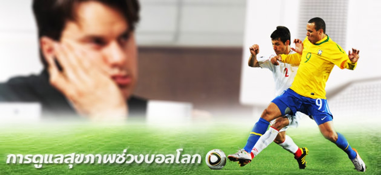 การดูแลสุขภาพช่วงบอลโลก ตอนนี้อยู่ในช่วงเทศกาลงานฟุตบอลโลก ถึงแม้จะจัดสี่ปีครั้ง แต่ละครั้งที่จัดก็ยิ่งใหญ่ตระการตา ในปีนี้งานฟุตบอลโลกจัดที่ประเทศแอฟริกาใต้ และทีมดังๆ ในดวงใจของใครหลายๆ คนก็มาแข่งขันกันอย่างมากมาย เราคนไทยถึงแม้ทีมชาติไทยจะไม่ได้ไปบอลโลก แต่อย่างไรก็ตามทีมในดวงใจ ไม่ว่าจะเป็นอังกฤษ บราซิล สเปน เยอรมัน ก็ติดโผกันทั้งนั้น ดังนั้นหลายๆ ท่านคงต้องอดหลับอดนอนมาดูทีมที่ตนเองโปรดกันอย่างแน่นอน ซึ่งอาจทำให้เสียสุขภาพ ร่างกายอ่อนเพลีย จึงควรเตรียมความพร้อมในด้านสุขภาพกาย และใจ ก่อนเชียร์ทีมโปรดกันอย่างสนุกสนาน