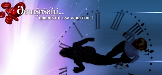 เคยสงสัยหรือตั้งคำถามกับตัวเองหรือไม่ว่า...แท้จริงแล้วร่างกายของเรา เมื่อเทียบกับธรรมชาติของวัยที่ควรจะเป็นแล้ว เราแก่เกินไปหรือเสื่อมโทรมกว่าวัยที่ควรจะเป็นหรือไม่? บางคนอายุตามบัตรประชาชน 27 ปี แต่อายุที่แท้จริงของร่างกายอาจเป็น 35 ปีก็เป็นไปได้ ซึ่งปัจจุบันการวิเคราะห์อายุชีวภาพสามารถระบุได้ชัดเจนว่า อายุที่แท้จริงของเราอยู่ที่เท่าไหร่ แก่เกินอายุจริง หรืออ่อนกว่าวัยหรือไม่