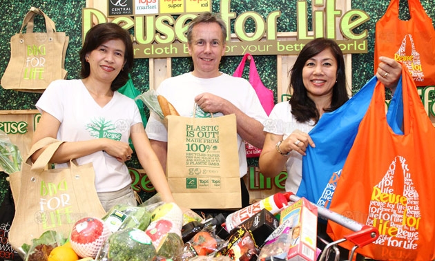 ในปีนี้เราได้ออก คอลเลกชั่นกระเป๋าผ้าใหม่ล่าสุด ในคอนเซปต์ Reuse For Life ซึ่งเป็นซีรีส์ที่ 7 แล้ว ชุดนี้เน้นดีไซน์ให้เทรนดี้มากขึ้น โดยเฉพาะ 2 สีใหม่คือ ดำและน้ำเงิน เพื่อเอาใจหนุ่มยุคใหม่ให้หันมาให้ความสำคัญในการดูแลสิ่งแวดล้อมกันมากขึ้น ด้วย สำหรับซีรีส์ ที่ 7 นี้มีมาให้เลือกถึง 3 แบบ มีทั้งผ้าไนลอนที่เป็นที่นิยมมีให้เลือกหลากสี อาทิ สีเขียว, ส้ม, ชมพู, น้ำเงินและดำ ในราคา 89 บาท, ผ้าดิบ ราคา 49 บาท และใหม่ล่าสุดเป็นผ้ากระสอบ ซึ่งออกแบบเป็น Bag For Life เป็นถุงผ้า กระสอบใบใหญ่คงทนราคา 199 บาท ถุงผ้าทั้งหมดนี้สามารถซื้อได้ที่ท็อปส์ ซูเปอร์, ท็อปส์ มาร์เก็ต และเซ็นทรัล ฟู้ด ฮอลล์ ทุกสาขา