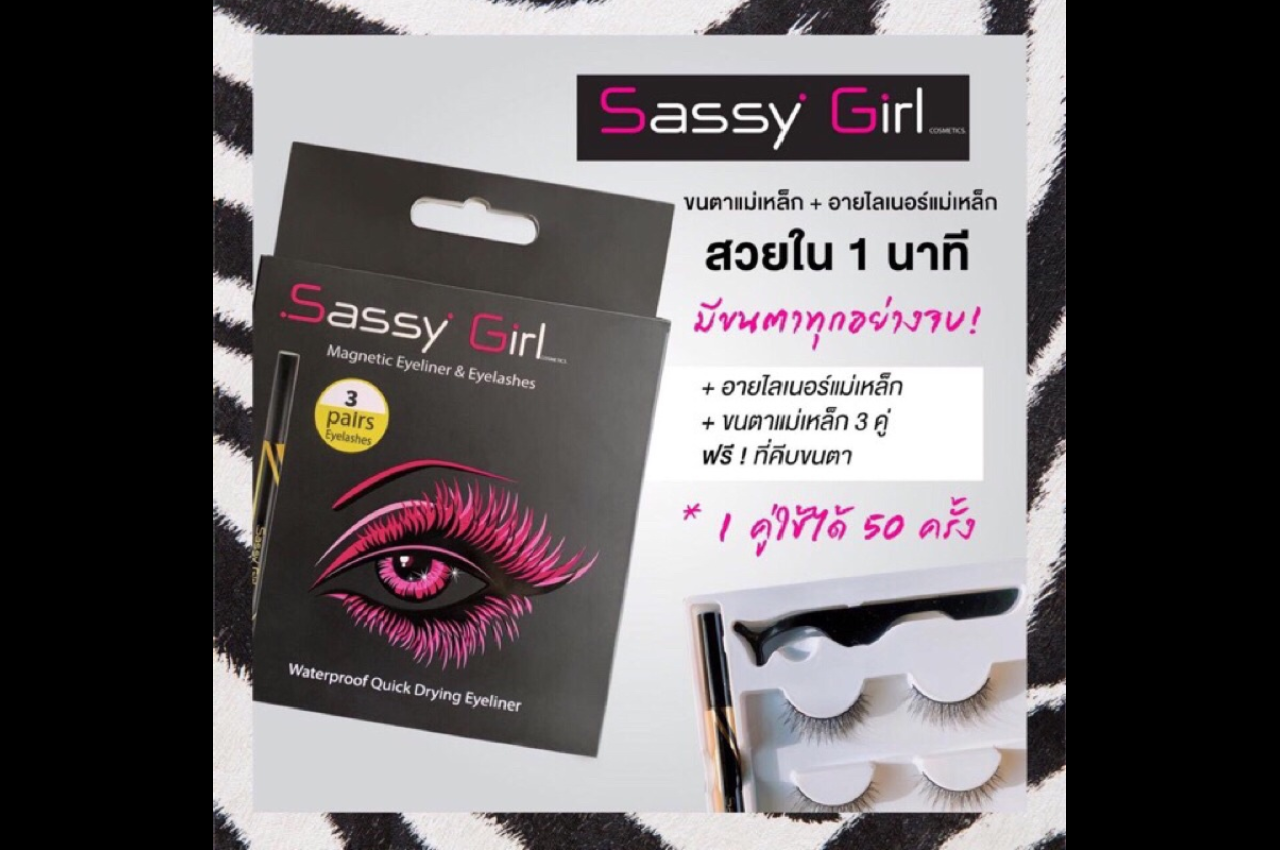 ขนตาแม่เหล็ก ยี่ห้อ Sassy Girl ขนตาแม่เหล็กสำหรับใช้คู่กับอายไลเนอร์แม่เหล็ก ใช้ง่าย ติดได้เองในไม่กี่นาที เหมาะกับมือใหม่ ขนตามีให้เลือกหลายแบบ ทั้งลุคสบายๆ และลุคแต่งหน้าจัดเต็ม สามารถใช้ซ้ำได้ 20-30 ครั้ง