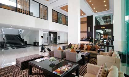 ถัดมาที่ชั้นล่างสุดของโรงแรม ยังคงเน้นการตกแต่งให้ดูสอดคล้องกับโดยรวมเช่นกัน ซึ่งแบ่งออกเป็น 3 โซนใหญ่ๆ คือ หน้า Lobby บริเวณตรงกลางพื้นที่ของชั้นล่าง ขนาบด้วยห้องอาหาร California Steak ทางฝั่งขวา และ Executive Lounge ทางฝั่งซ้าย