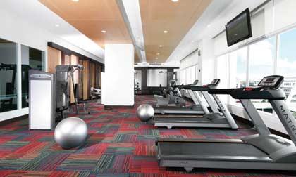 ภายในห้องออกกำลังกายของชั้น 2 ที่มีบริการฟิตเนส และซาวน่า