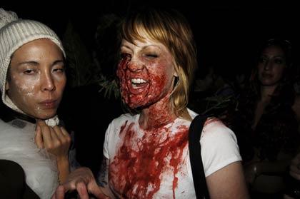 การทำเลือดปลอมนั้นใช้แป้งข้าวโพด ต้มในน้ำเดือด ให้เหนียวพอประมาณ จากนั้นผสมกับสีผสมอาหารคือสีแดงสัก 3 ช้อนโต๊ะ สีเหลืองครึ่งช้อนโต๊ะ และสีน้ำเงิน 2-3 หยด ขนจนเข้ากันอย่างช้าๆ ไม่ให้ข้นจนเกินไป ก็จะได้เลือดปลอมที่สมจริงสุดๆ