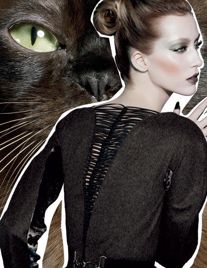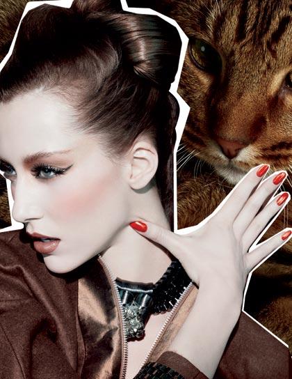 สำหรับการแต่งหน้าสไตล์นี้เติมความสวยงามให้ดวงตาด้วย Eye Shadow ที่สามารถเลือกแต่งเติมได้ถึง 4 เฉดสี คือ สีเหลืองเบจ , สีทองหม่น , สีเขียวอมน้ำตาล และสีน้ำตาลอมดำเข้ม ต่อด้วยการเพิ่มความเข้มให้กับดวงตาด้วย Superslick Liquid Eye Liner ที่เลือกได้ถึง 3 เฉดสีเช่นกันกับ สีเขียวเข้มประกาย , สีน้ำตาลช็อคโกแลตประกายมุกอ่อนนุ่ม และสีเขียวมรกตประกายมุกนุ่ม เติมเสน่ห์ให้น่าหลงใหลมากขึ้นกับ Pigment สีทองหม่นประกายฟรอสต์ หรือสีเขียวเทอร์ควอยซ์ประกายมุกเขียว ตามด้วย Plush Lash Mascara สีดำหรู เพิ่มเติมริมฝีปากให้ชวนมองมากขึ้นด้วย Lipstick กับหลายเฉดสีอย่างสีม่วงหม่นประกายฟรอสต์ , สีน้ำตาลอมเทา , สีขียวอมเหลืองประกายมุกหลากสี หรือจะเป็นสีแดงเบอร์รี่เข้ม ต่อด้วย Lipglass ก็ทำให้ดูน่าหลงใหลไปอีกแบบ สุดท้ายแต่งพวงแก้มของคุณให้ดูโดดเด่นชวนมองด้วย Mineralize Blush สีทองประกายมุก เพียงเท่านี้คุณก็สวยสง่าแบบนางแมวป่าได้แล้ว