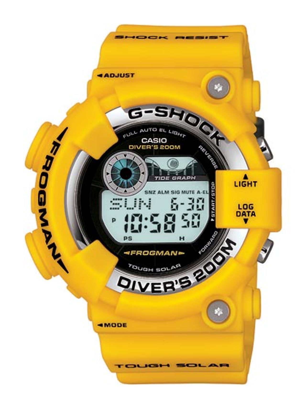 นาฬิการะบบกันน้ำ 'The ISO-level 200-meter' สุดทันสมัยสำหรับคนที่มีไลฟ์สไตล์ชอบเล่นกีฬาดำน้ำเป็นพิเศษ อีกทั้งยังออกแบบให้มีระบบพลังงานแสงอาทิตย์ จึงไม่ต้องกลัวเรื่องแบตเตอรี่ ส่วนดีไซน์ก็จี๊ดสุดๆ ด้วยสีเหลือง สามารถเห็นได้ชัดเจนเวลาอยู่ใต้น้ำ นอกจากนี้ยังมีฟังก์ชั่นระบบการบอกระดับน้ำขึ้นน้ำลง (Tide Graph) สำหรับคนชอบการเดินเรือด้วย