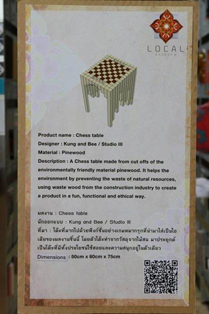 ทั้งนี้นิทรรศการLocal Essence จัดขึ้นระหว่างวันที่ 31 มีนาคม-7 เมษายน 2554 ที่ Material ConneXion Bangkok ที่ TCDC