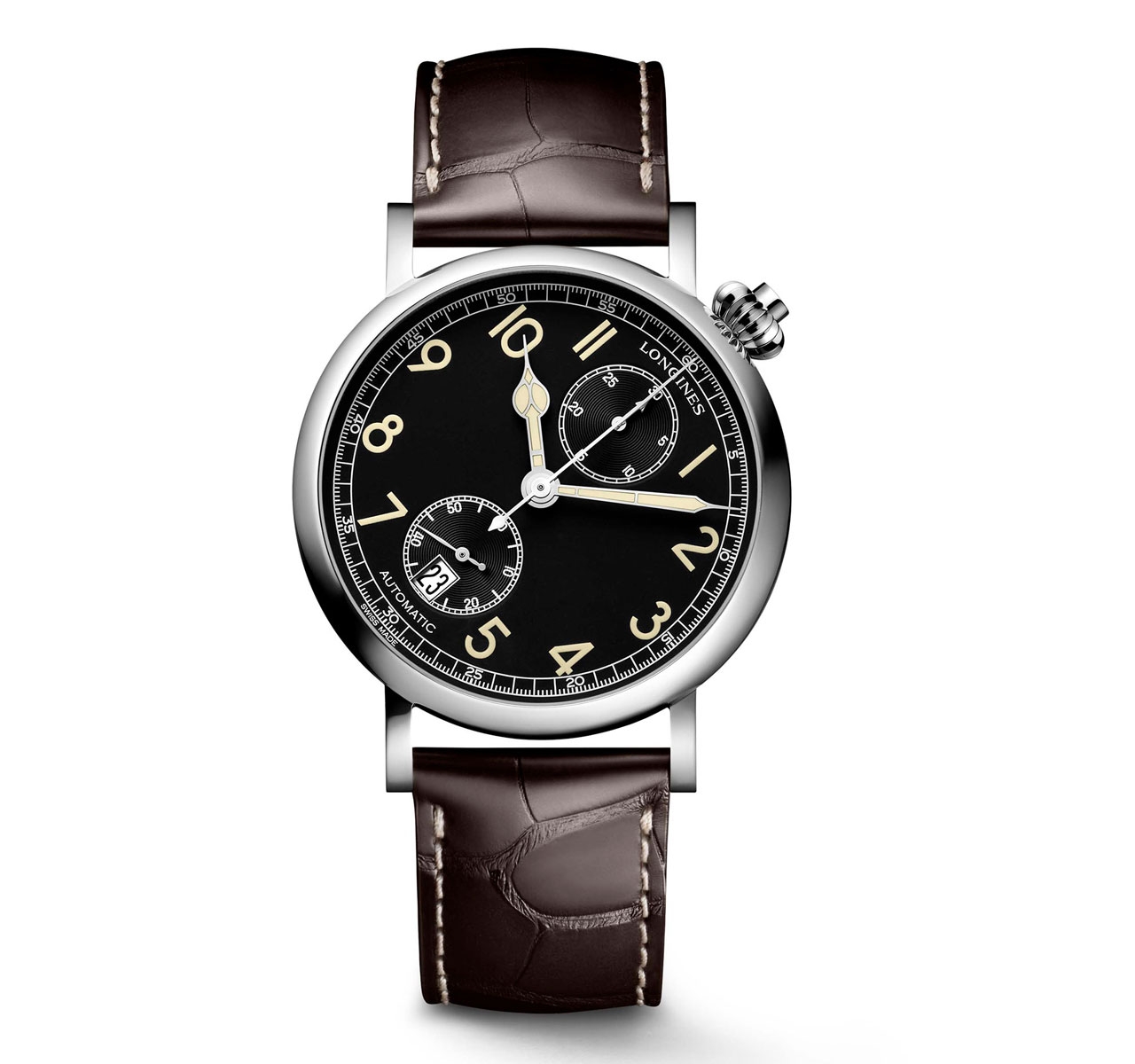 นาฬิกา The Longines Avigation Watch Type A-7 1935 (เดอะ ลองจินส์ อะวิเกชั่น วอทช์ ไทป์ เอ-เจ็ด 1935) คือการสดุดีแด่เรือนเวลาแห่งโลกการบินในอดีต ลองจินส์มีความสัมพันธ์ที่แน่นแฟ้นกับวงการการบิน รวมถึงนักบุกเบิกทางอากาศมาตั้งแต่ช่วงต้นศตวรรษที่ 20 โดยนาฬิการุ่นใหม่นี้ ลองจินส์ได้รับแรงบันดาลใจจากนาฬิกาที่สั่งผลิตโดยกองทัพอากาศสหรัฐฯ ในปี ค.ศ.1935 โดยนาฬิกาที่ได้รับชื่อว่า “Type A-7” ของกองทัพสหรัฐฯ เพื่อนำไปให้นักบินสหรัฐฯ สวมใส่ ต้องได้รับการรับรองมาตรฐานที่ดีที่สุด ทั้งในแง่ความสวยงาม ความทนทาน และความแม่นยำ ส่วนจุดเด่นของ The Longines Avigation Watch Type A-7 1935 คือหน้าปัดสีดำที่เอียงไปทางขวา 40 องศา เพื่อเป็นการเคารพต่อโมเดลดั้งเดิมที่ออกแบบมาให้นักบินสามารถอ่านค่าเวลาได้ด้วยการเหลือบมองโดยไม่จำเป็นต้องปล่อยมือจากคันบังคับ และยังช่วยอำนวยความสะดวกในการใช้ฟังก์ชั่นนาฬิกาขณะทำการบินโดยสวมถุงมือ ดังนั้นเม็ดมะยม ณ ตำแหน่ง 12 นาฬิกาจึงมีไว้เพื่อควบคุมฟังก์ชั่นโครโนกราฟต่างๆ ทั้งการจับเวลา หยุดเวลา หรือรีเซตระบบด้วยปุ่มเดียวนี้เท่านั้น ภายในตัวเรือนสเตนเลสสตีลขนาด 41 มม. บรรจุกลไกโครโนกราฟ L788.2 ที่พัฒนาขึ้นเพื่อลองจินส์โดยเฉพาะ นอกจากนี้ยังคงเอกลักษณ์พิเศษของโมเดลดั้งเดิมด้วยหน้าปัดสีดำแมตต์ ตกแต่งด้วยตัวเลขอารบิกขนาดใหญ่ และล้อมด้วยวงกลม “train track” ที่ช่วยให้อ่านค่าเวลาได้อย่างแม่นยำ และเติมความสมบูรณ์ด้วยเข็มนาฬิกาตกแต่งลวดลายแบบกระจกโบสถ์ที่เคลือบสาร Super-LumiNova® มาพร้อมสายหนังสีน้ำตาลที่เข้ากับหน้าปัดได้เป็นอย่างดี