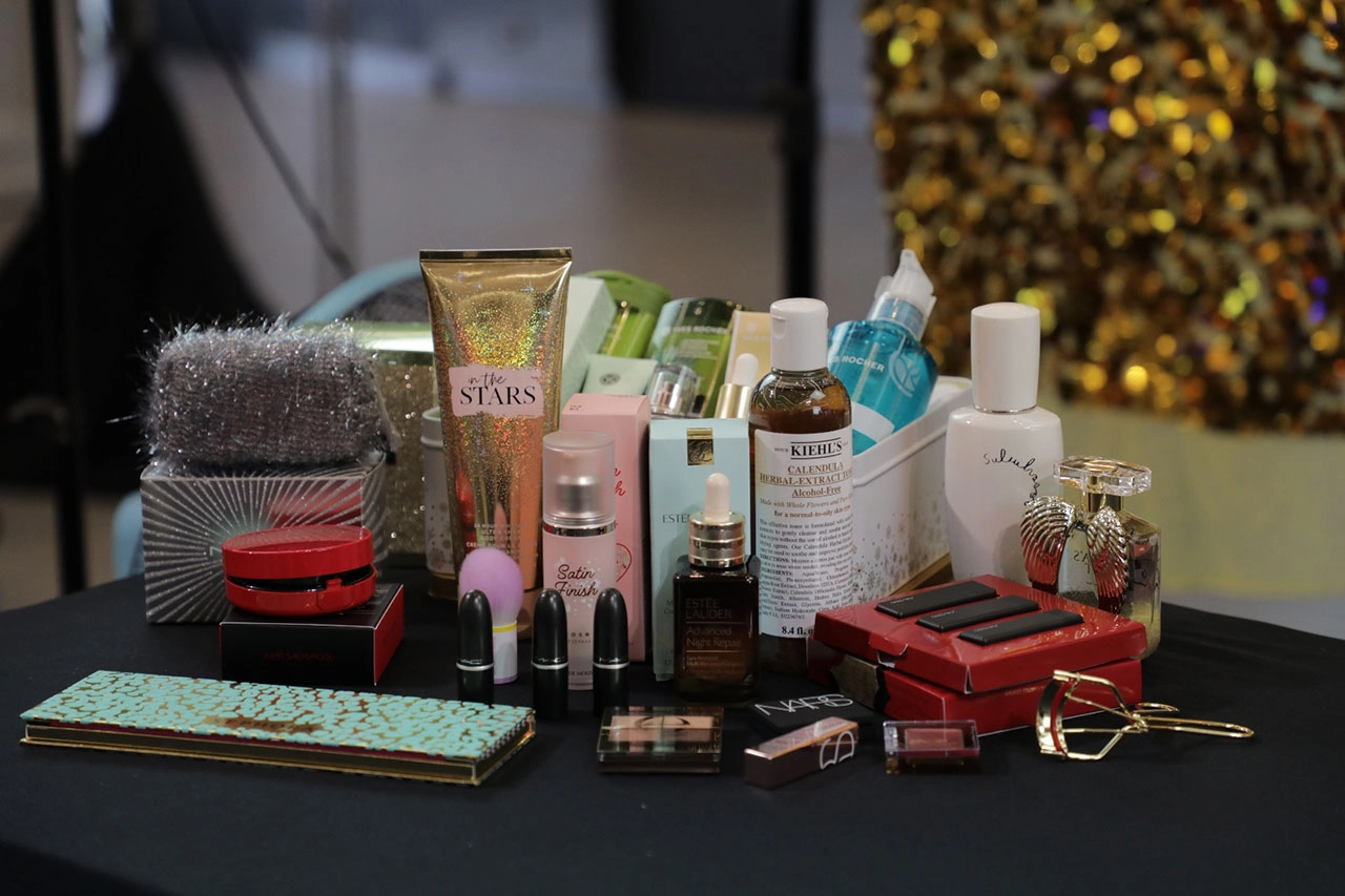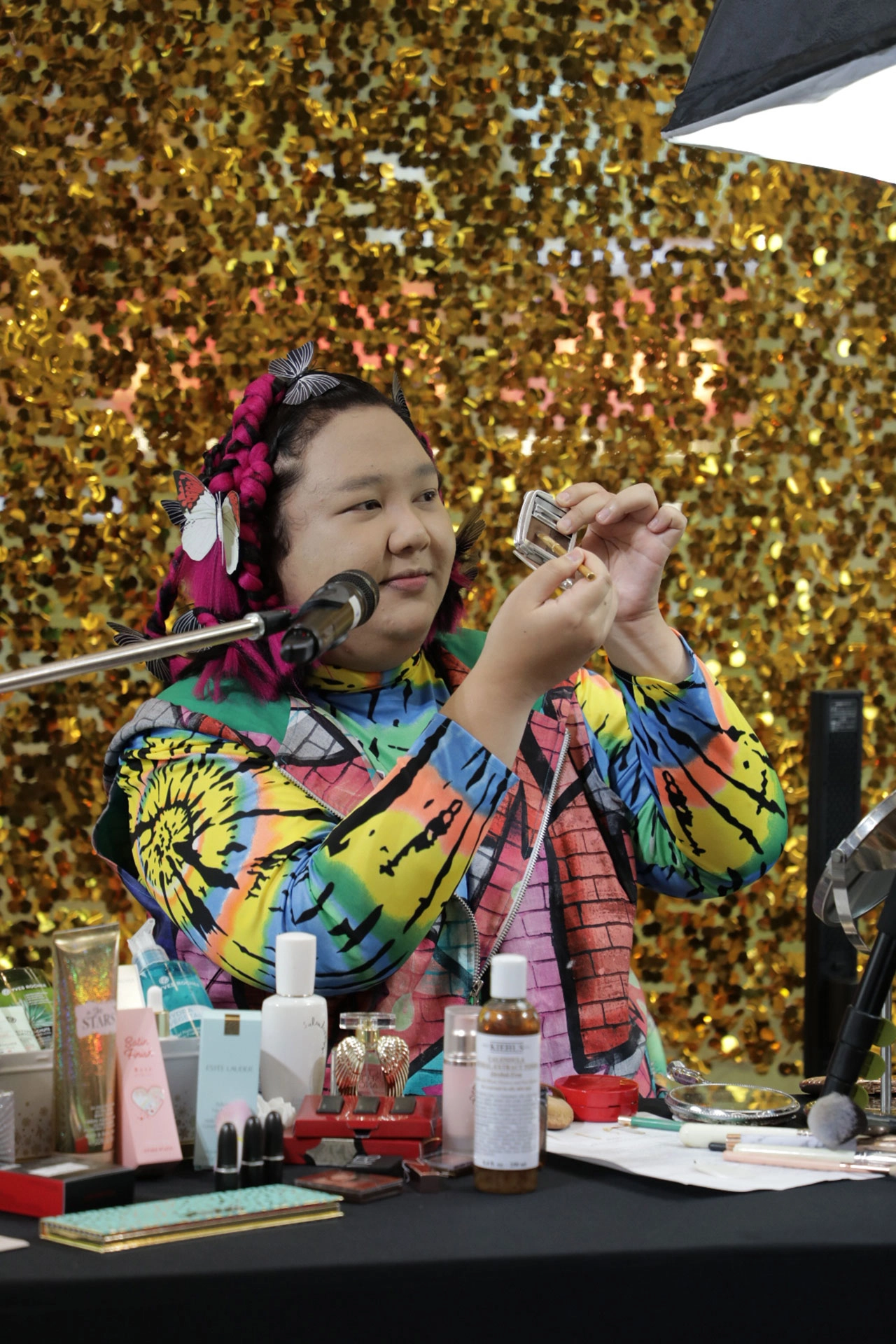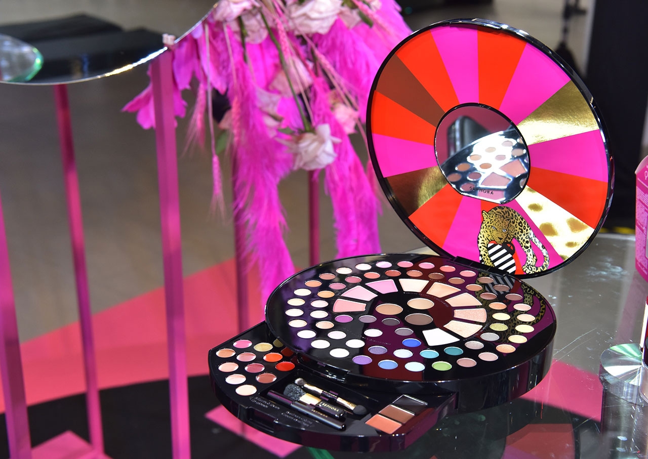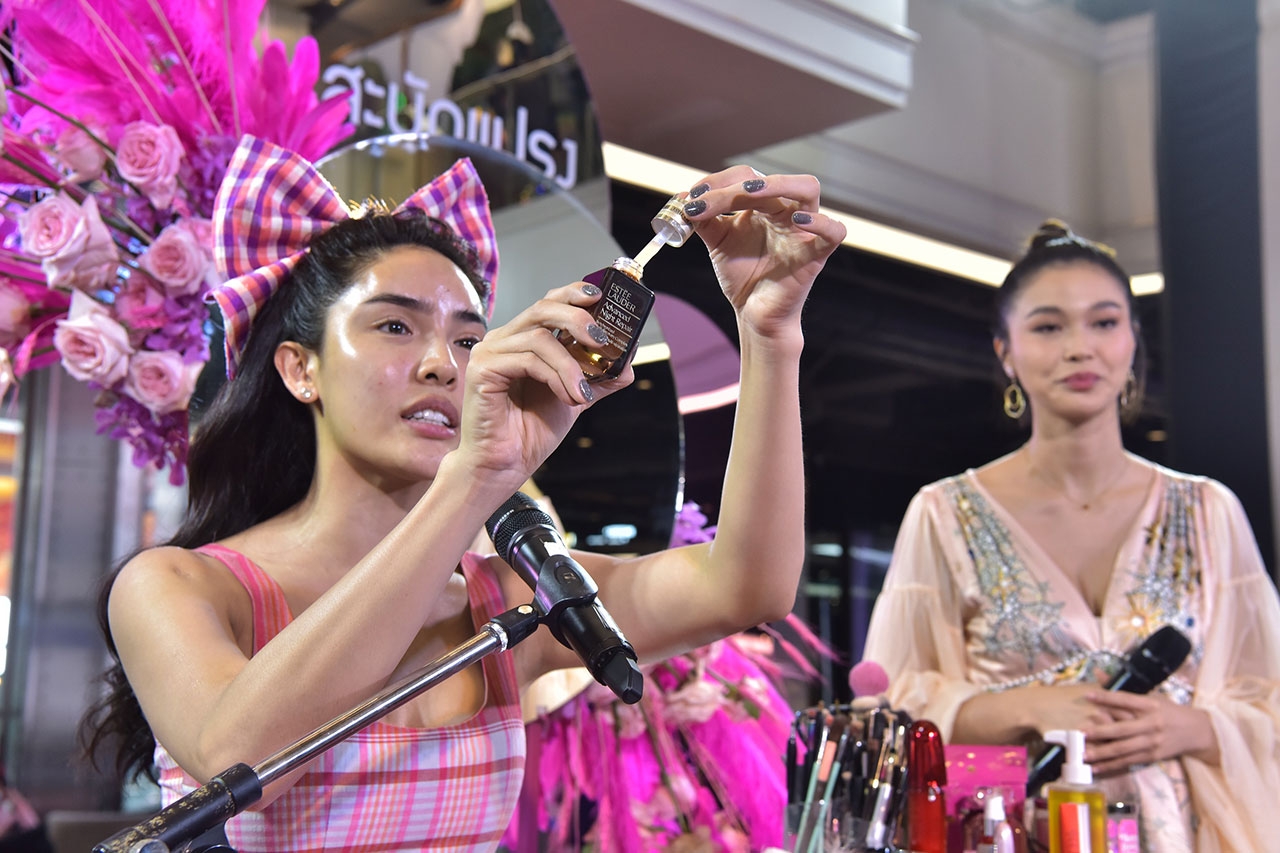 จากนั้นเปิด SEPHORA Collection Wild Wishes Blockbuster Makeup Palette (Limited Edition Holiday 2020) ออกมาเชื่อว่าสาวๆ ต้องกรี๊ด เพราะครบครันไปหมดจบในพาเล็ตต์เดียว มีทั้งแป้ง, บลัชออน, ไฮไลต์, คอนทัวร์, อายไลเนอร์, ลิปสติก ทั้งเนื้อชิมเมอร์และกลิตเตอร์ โดยการลงสีตาสีแรกที่ทุกควรจิ้มควรเป็นโทนสีเนื้อครีมๆ เพื่อเป็นเบสให้กับดวงตาก่อน ทาจากหางตาไล่ไปที่กระบอกตา ทำให้ตาโตขึ้นแต่ไม่เว่อร์ไป จากนั้นเปลี่ยนเป็นหัวแปรงเล็กจิ้มสีที่เข้มขึ้นมานิดมาคัดเบ้าซึ่งวันนี้ใช้เบสเป็นครีมตาเป็นสีชมพูเป็นลุค everyday รอดตาย จากนั้นกรีดอายไลน์เนอร์ ปัดมาสคาร่าโดยวางกระจกไว้ด้านล่างเหลือบตามองแล้วปัดจะช่วยให้ได้ดวงตาแบบ foxy eyes ดูเฉี่ยวขึ้น เทคนิคนี้จะดีกว่าที่ปัดกันแบบปกติที่เหลือบตามองบน สำหรับการติดขนตาปลอมนั้นเป็นความเข้าใจผิดที่จะต้องใช้กาวเยอะๆ ความจริงคือทาแค่นิดเดียวพอเปียก ลงชิมเมอร์ตาล่างจากกลางตาไปหางตาทำให้ตาโตขึ้น