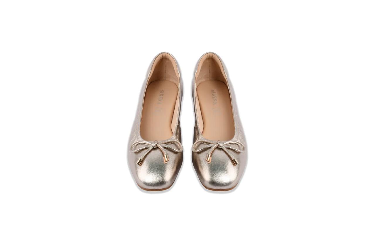รองเท้าคัทชูทรงคลาสสิกแบรนด์ Sirena ผลิตจากหนังแกะทั้งด้านนอกและด้านใน ทำให้รองเท้ามีความนิ่ม ยืดหยุ่นสูง รู้สึกสบายเท้าเมื่อสวมใส่ มีดีเทลโบว์ผูกตกแต่งเพิ่มลูกเล่นและความน่ารัก รองเท้ารุ่นนี้มีสีสุภาพให้เลือกหลายมี รวมไปถึงสีเมทัลลิกด้วย มีให้เลือก 4 สีด้วยกันคือ สีเงิน สีแชมเปญ สีพิวเตอร์และสีโรสโกลด์